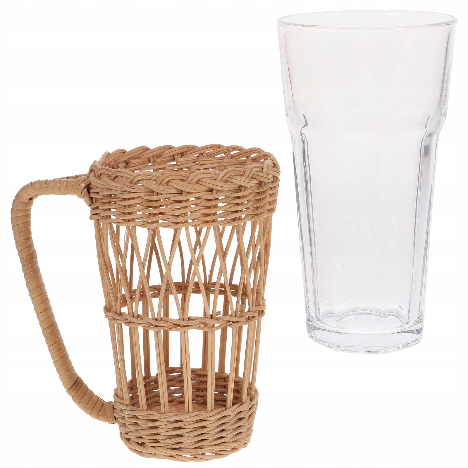 ✅Скляна чашка, покрита ручним рукавом із ротанга з ручкою, зручна та приваблива, дуже підходящий подарунок для людей, які не люблять пити воду.