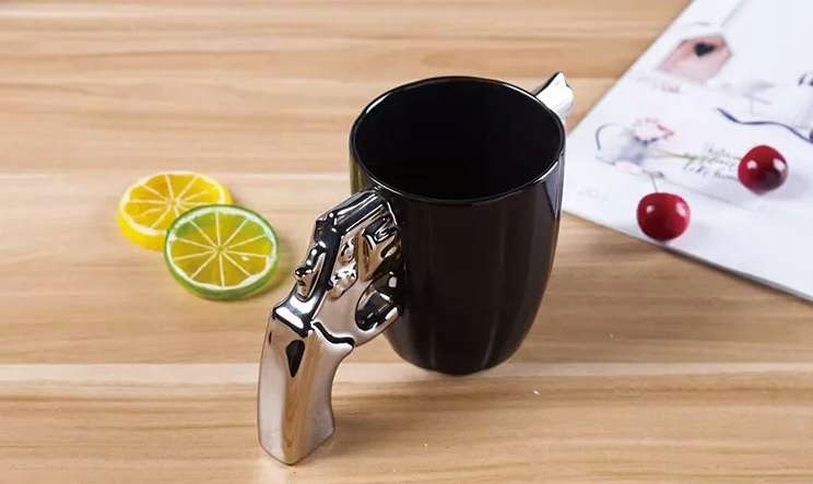 Кружка для справжніх крутих хлопців з ручкою у формі револьвера з виступаючим дулом.