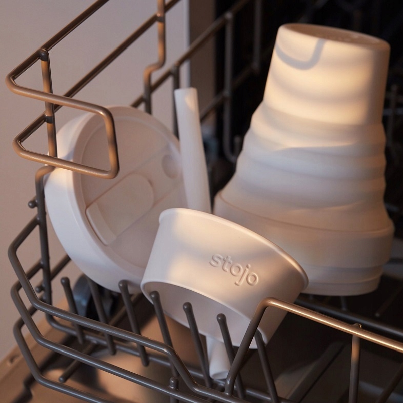 Stojo Pocket після повторного складання легко очистити самостійно або в посудомийній машині. Чашкантакож підходить для мікрохвильови.
