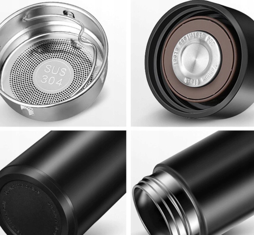 - подвійні стінки, розділені вакуумом, зберігають температуру напою 12 годин