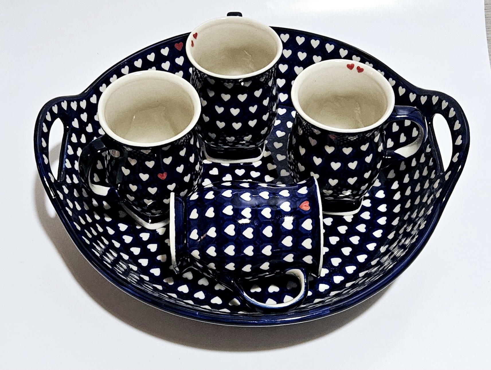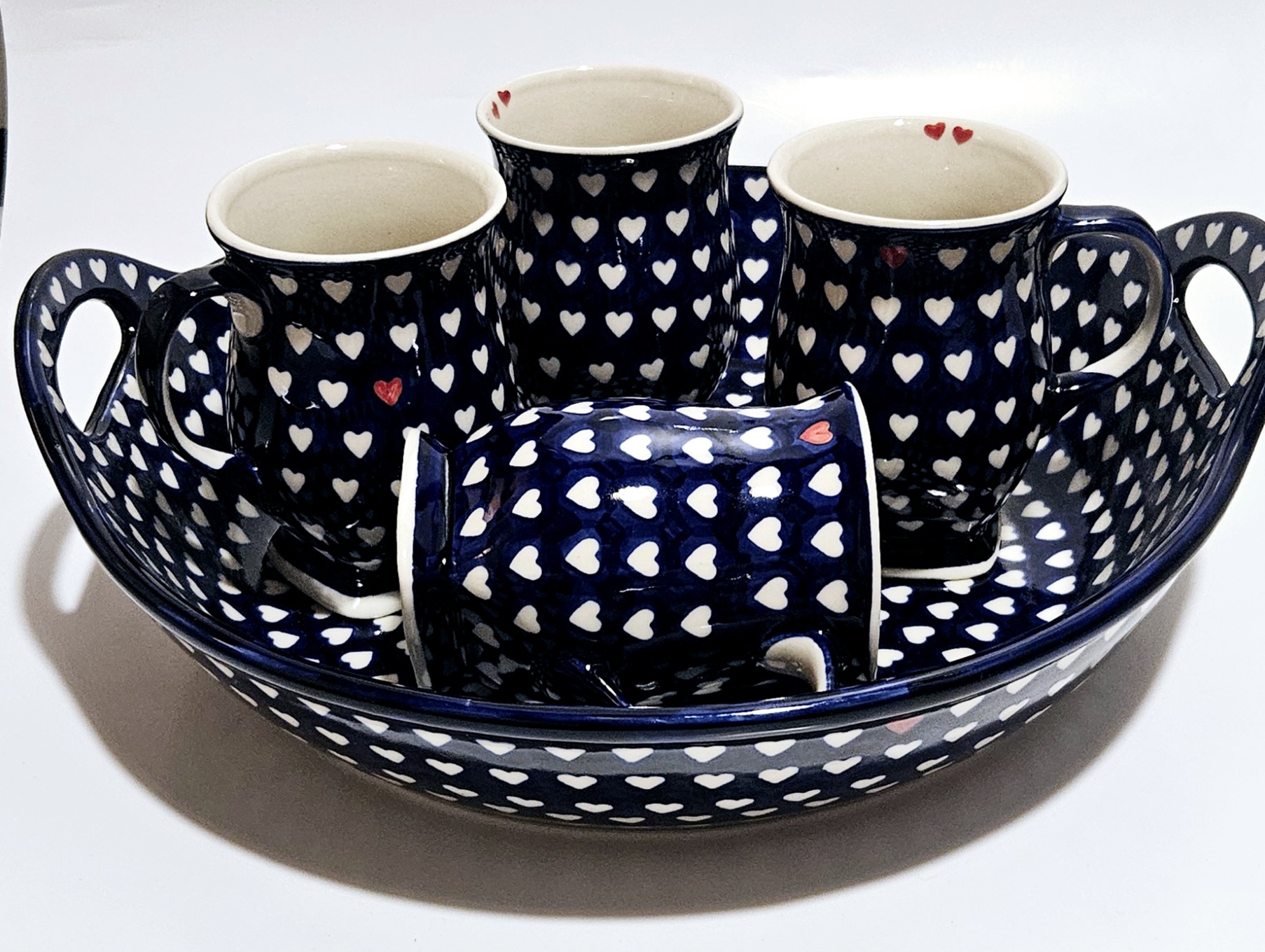 КЕРМІЧНА БОЛЕШАВЕЦЬКА КРУЖКА - ручний розпис сердечками. 1 із 4
