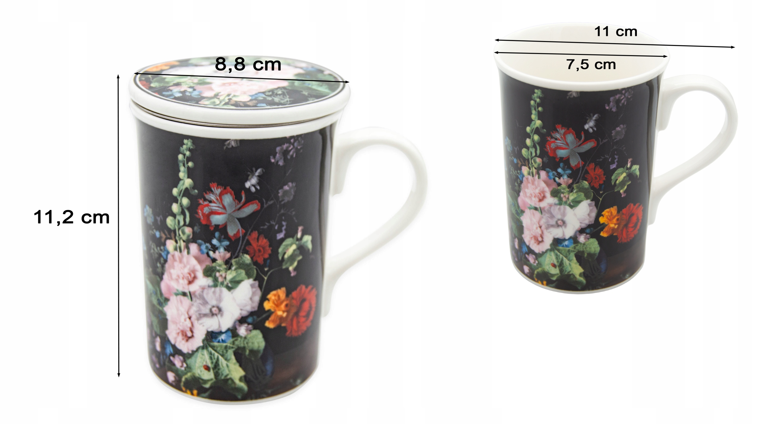 Кухоль із заваркоюі кришкою виготовлена з високоякісної порцеляни NBC. Набір кухоль і заварка є елегантним доповненням для подачі напоїв вашим гостям. Він чудово підійде для ресторану, але також може стати прикрасою будь-якого будинку. Заварка, прикріплена до кухля, дозволяє отримати природний і надзвичайно сильний аромат заварених чаїв або трав. Набір можна мити в посудомийній машині. Кружка упакована в гарну коробку - ідеально підходить на подарунок.