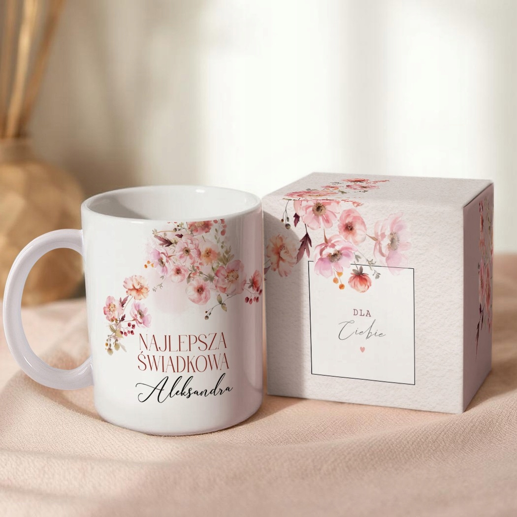 Ви шукаєте унікальний і недорогий подарунок, який буде приємним жестом вдячності свідку? Персоналізований кружок з назвою та написом "Найкращий свідок", прикрашений тонкою квітковою графікою, - це чудовий спосіб подякувати їй за підтримку та присутність, коли готується до весілля та весілля. Ціле упаковане в елегантну коробку з відповідною графікою - готова до передачі.