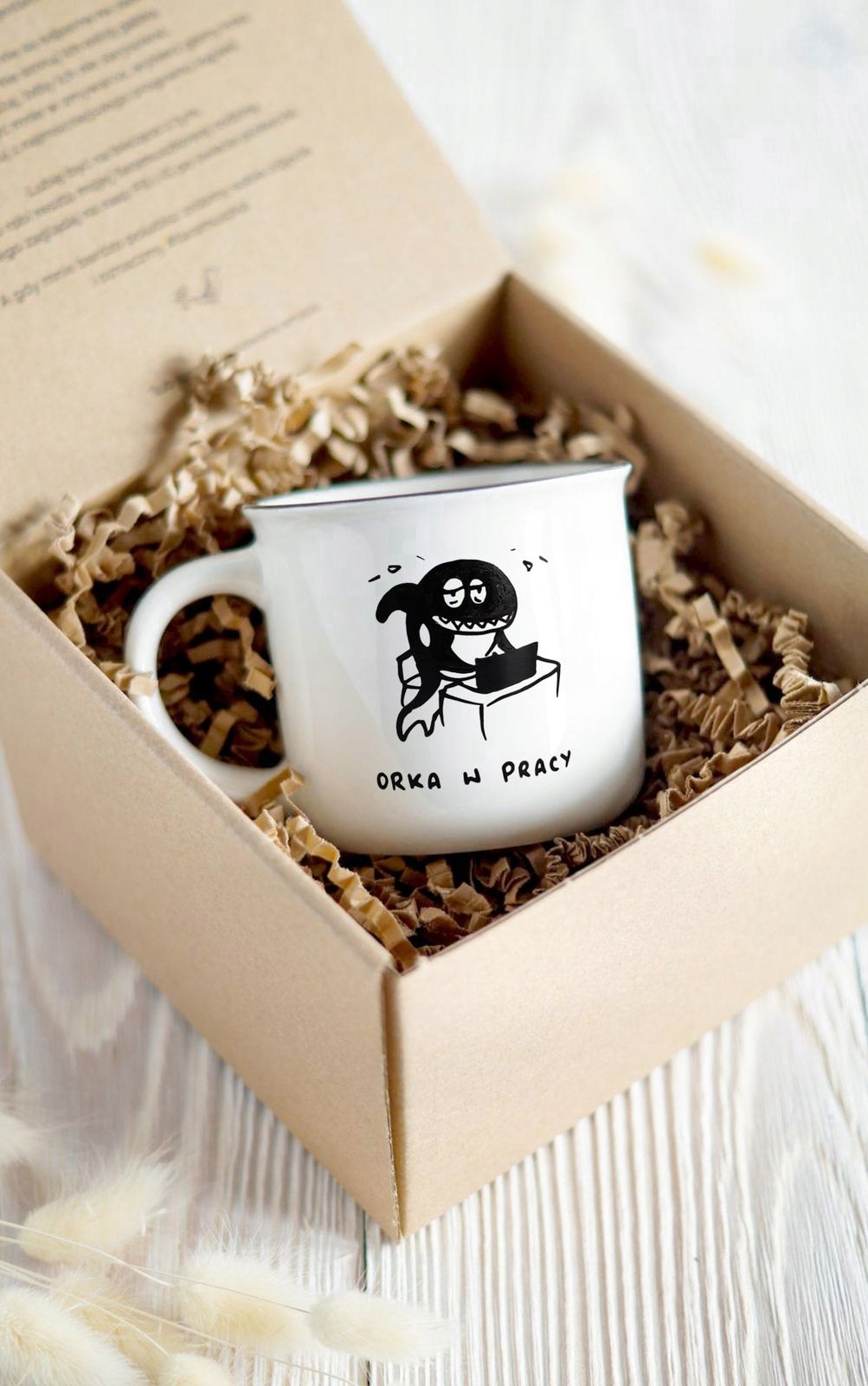 Кружок з оранкою на роботі, смішна чашка на роботу