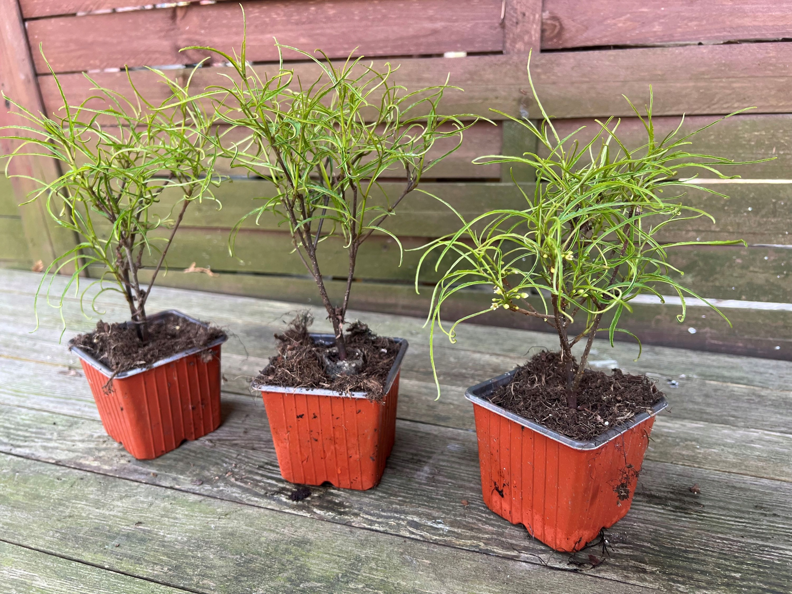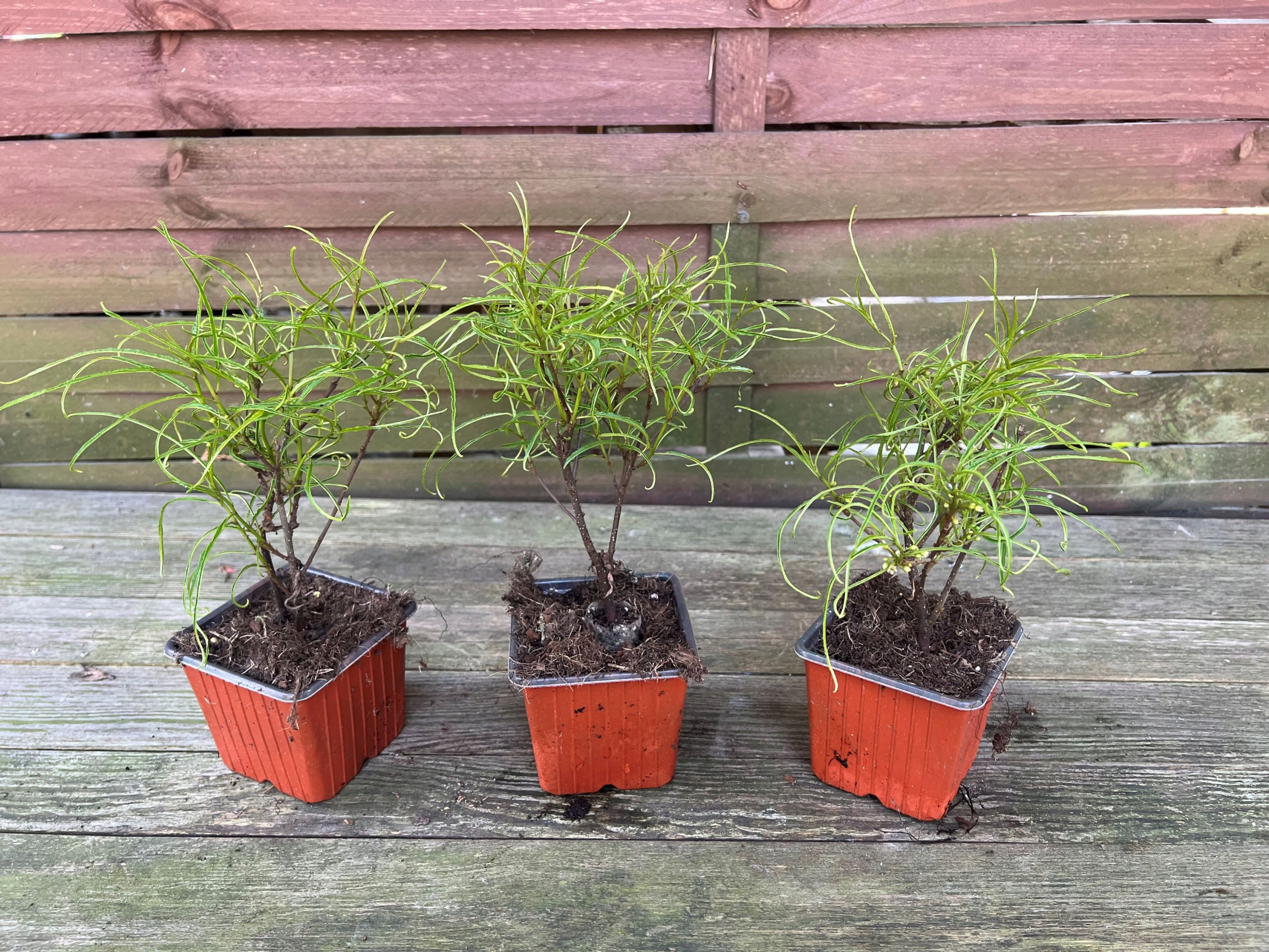 Сіянці знаходяться в горщиках і добре вкорінюються в торфі, що значно сприяє подальшому росту після висадки в грунт.