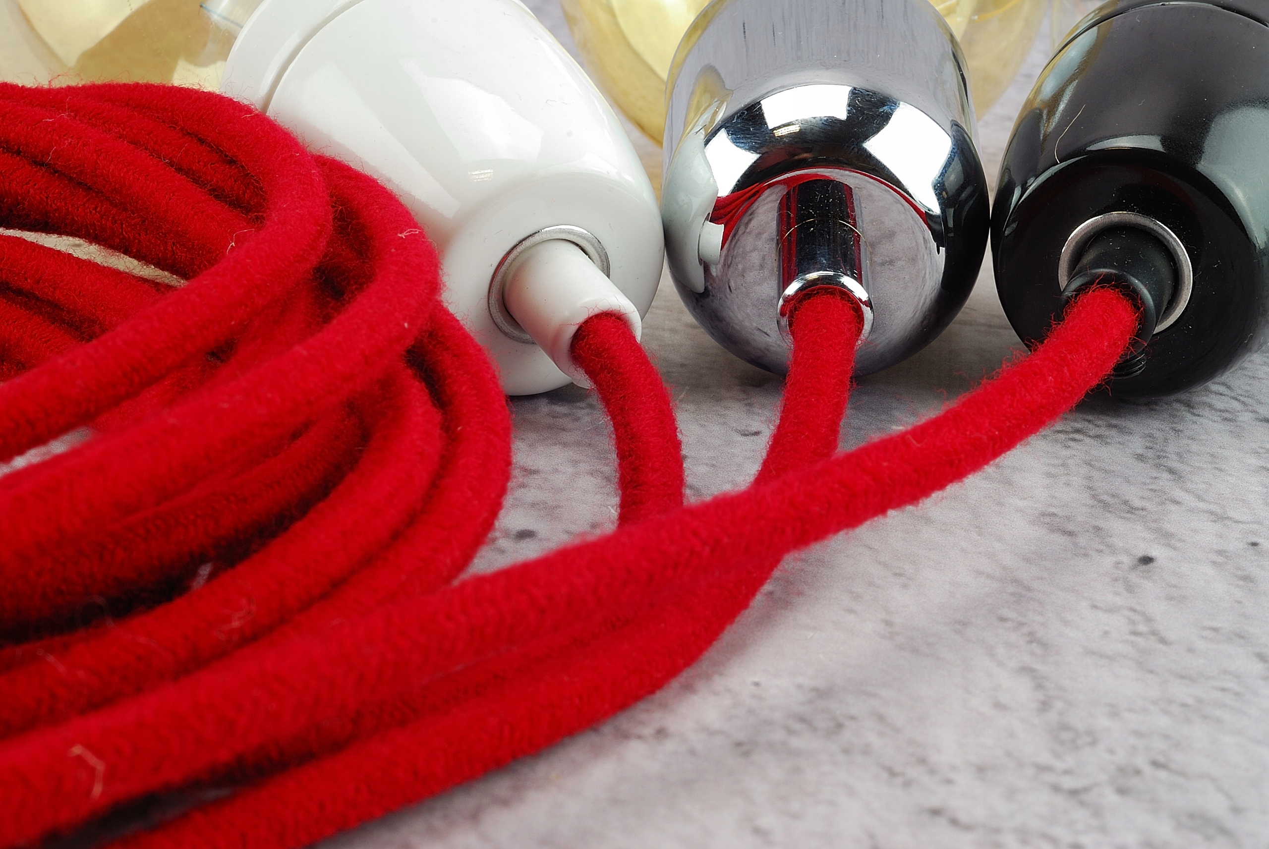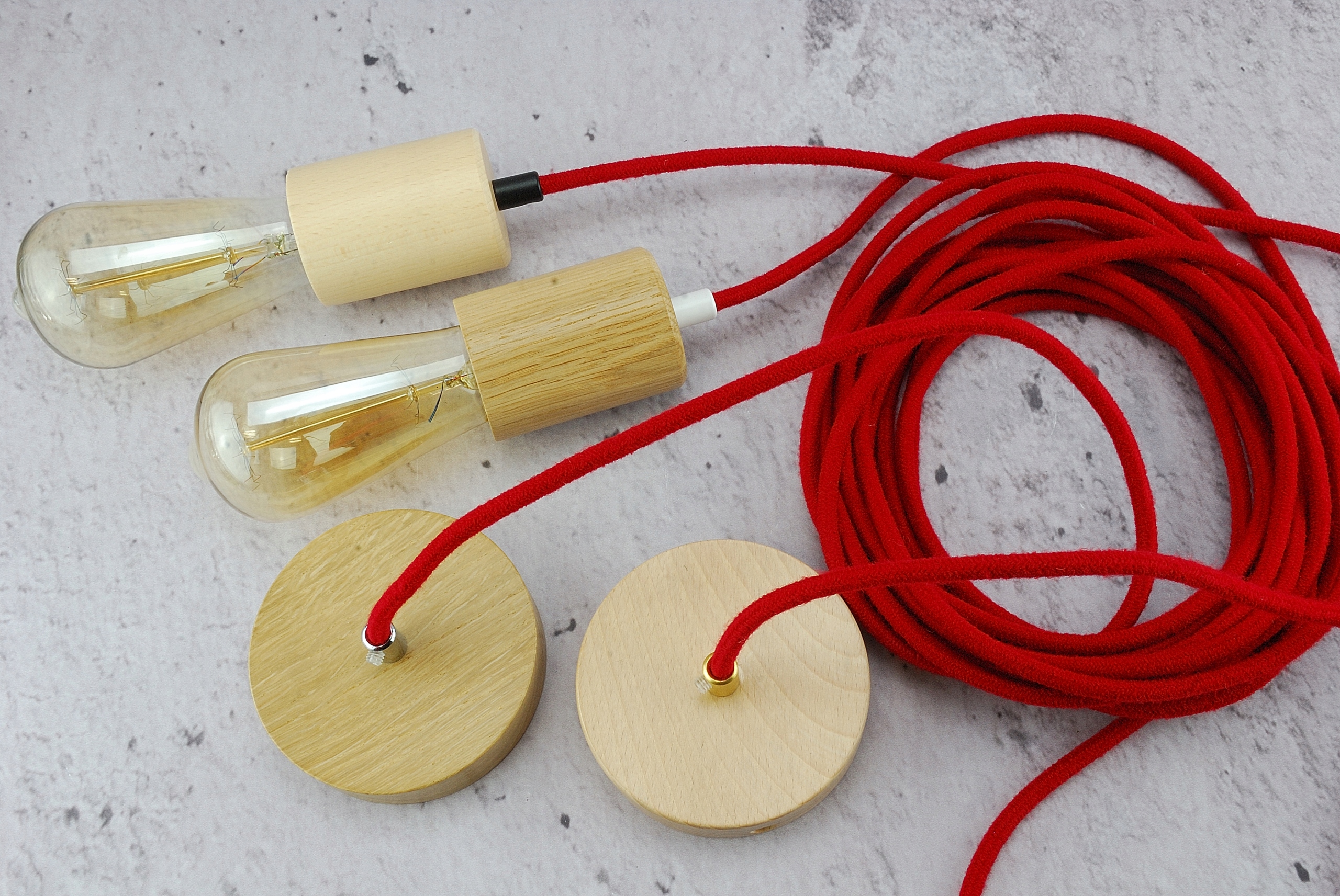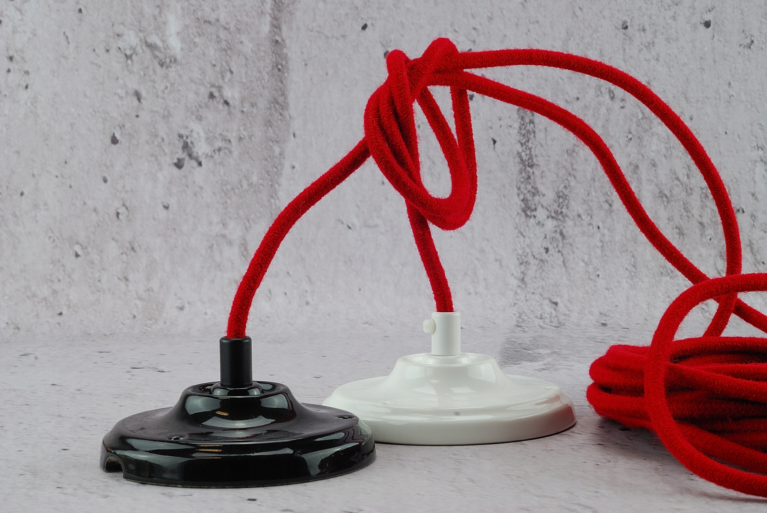 krwisty czerwony przewód w oplocie naturalnym wełniany kabel do lampy LOFT