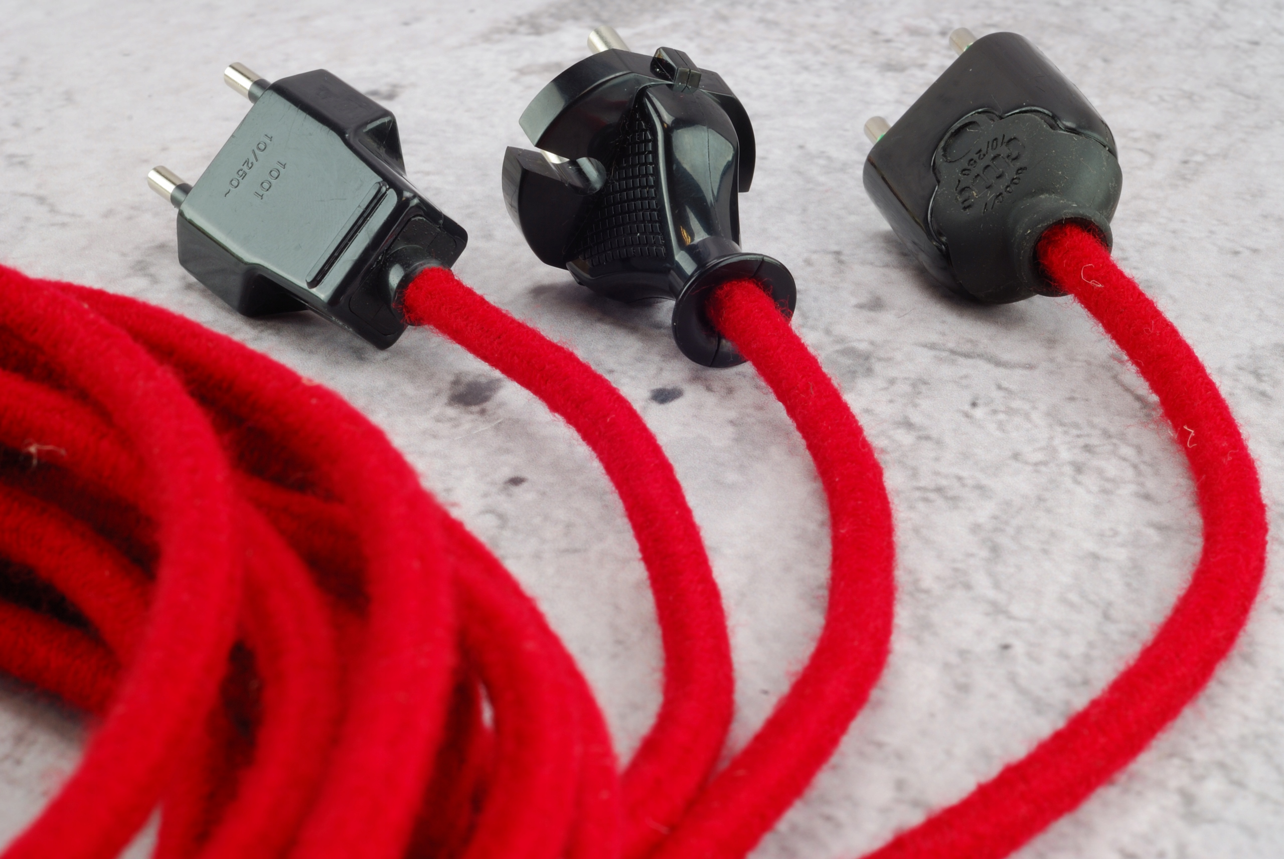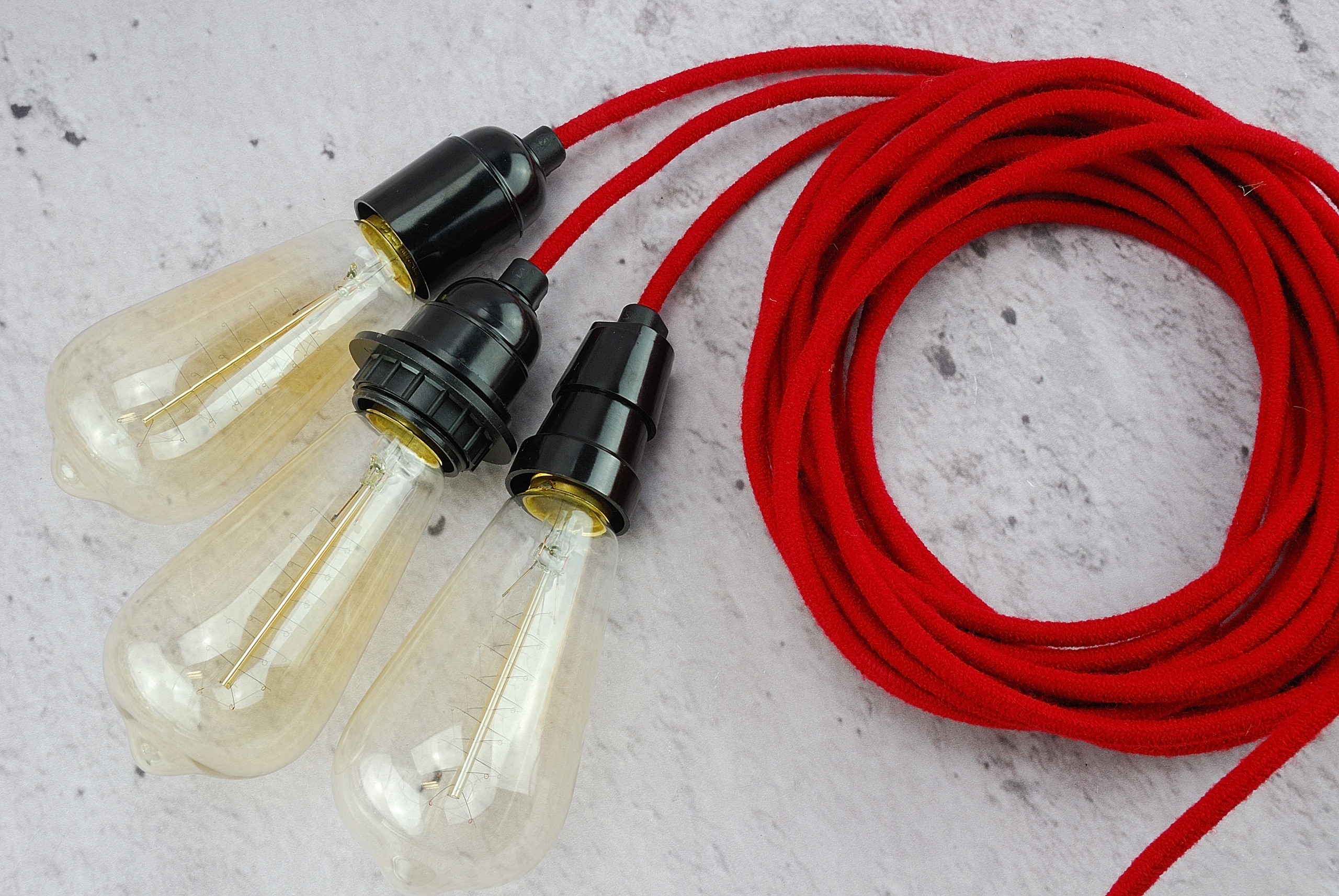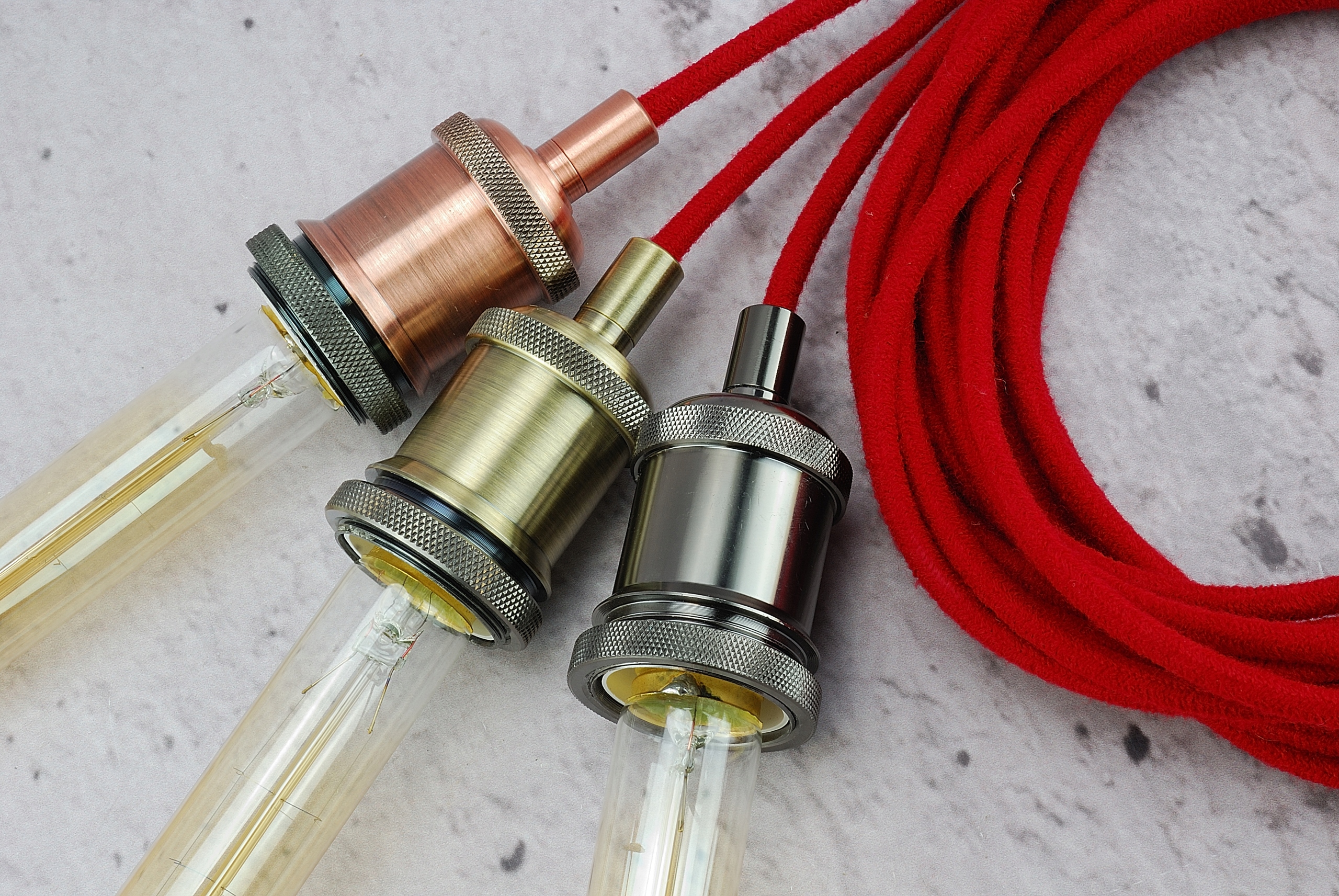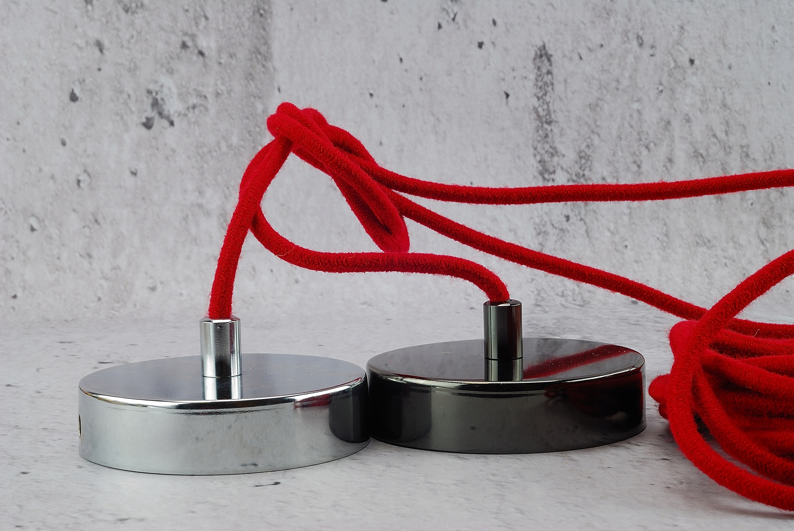 krwisty czerwony przewód w oplocie naturalnym wełniany kabel do lampy LOFT