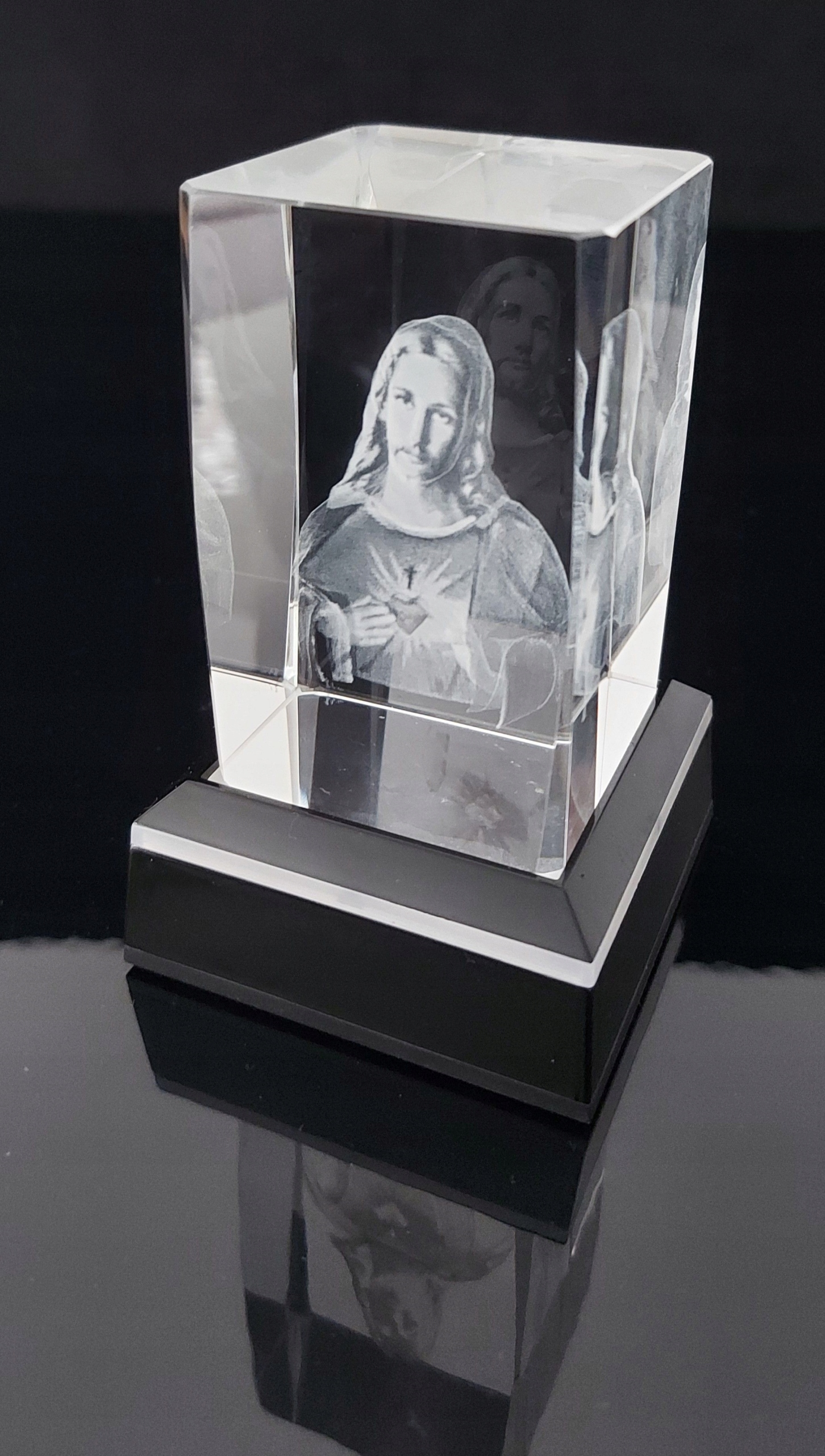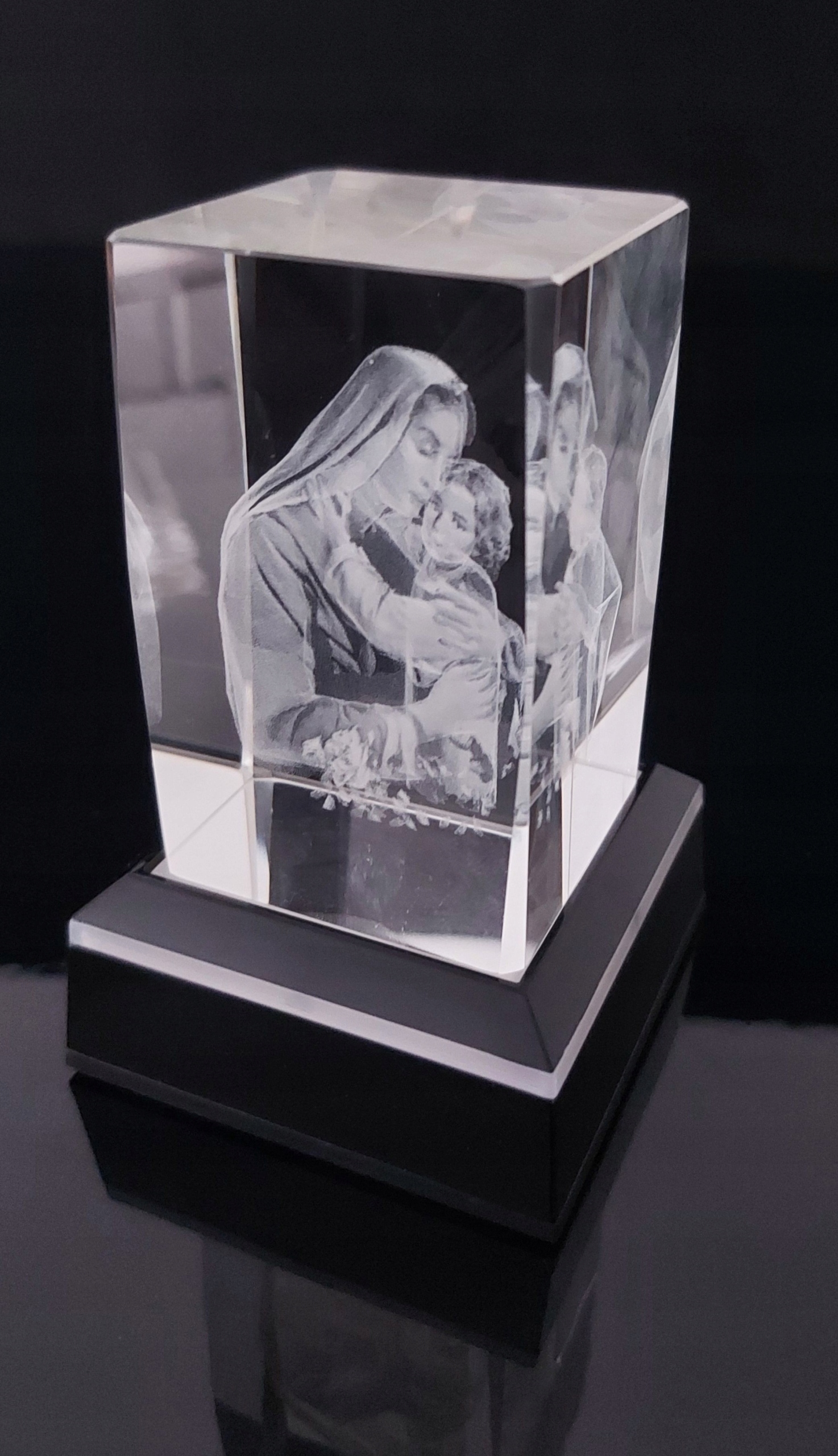 Kryształ 3D pomysł na prezent pamiątka na komunię rocznicę- Jezus Maryja