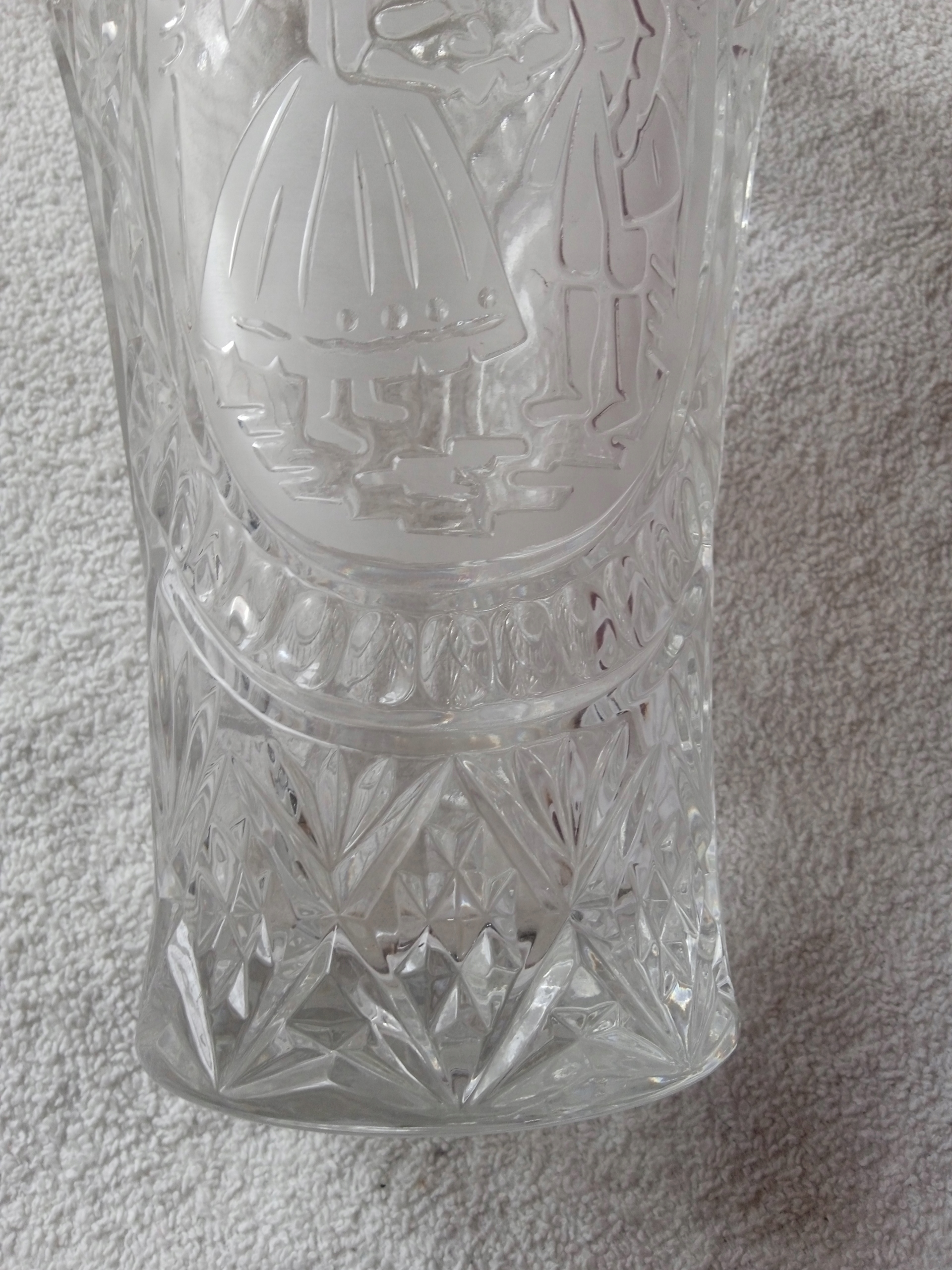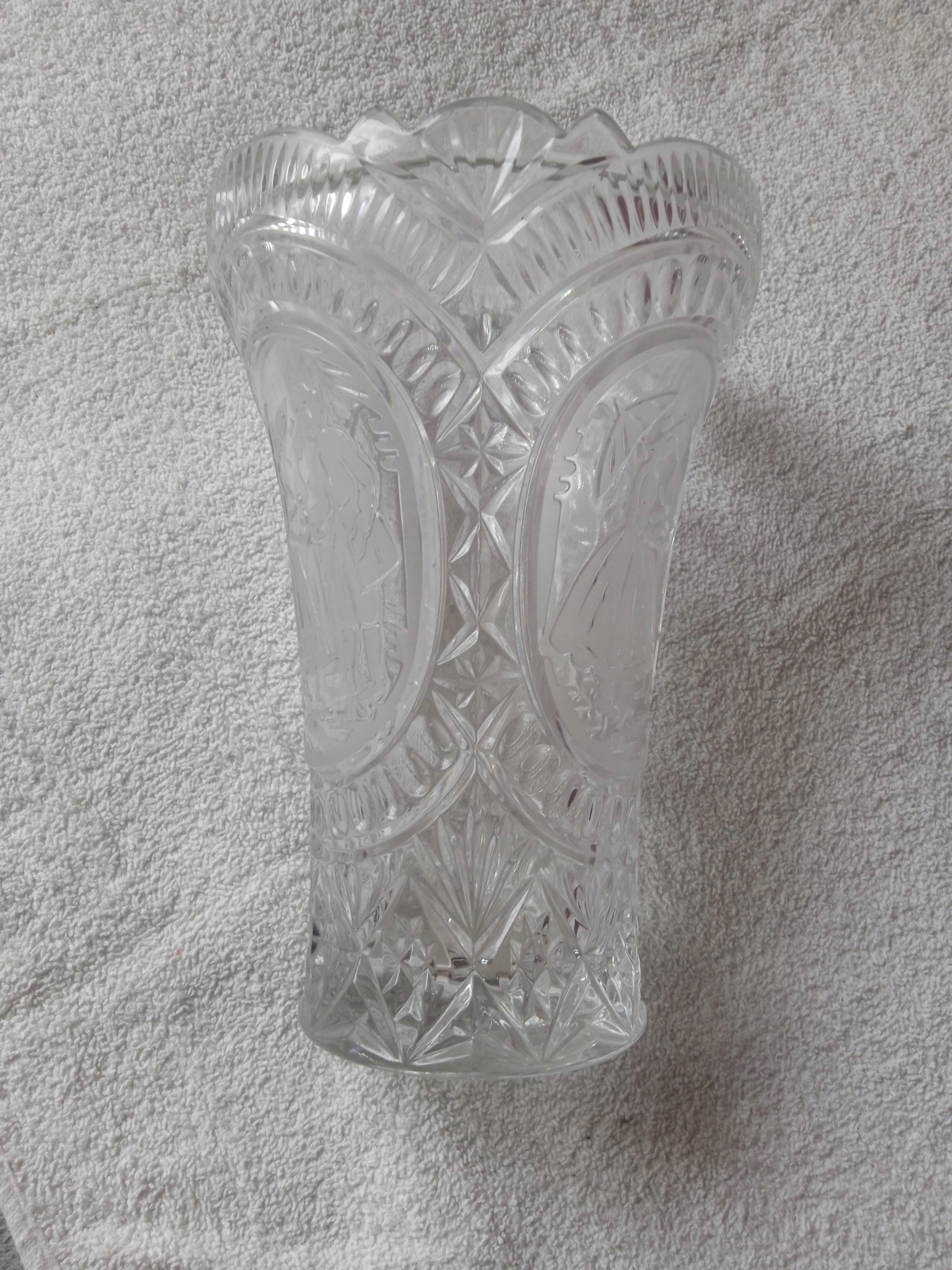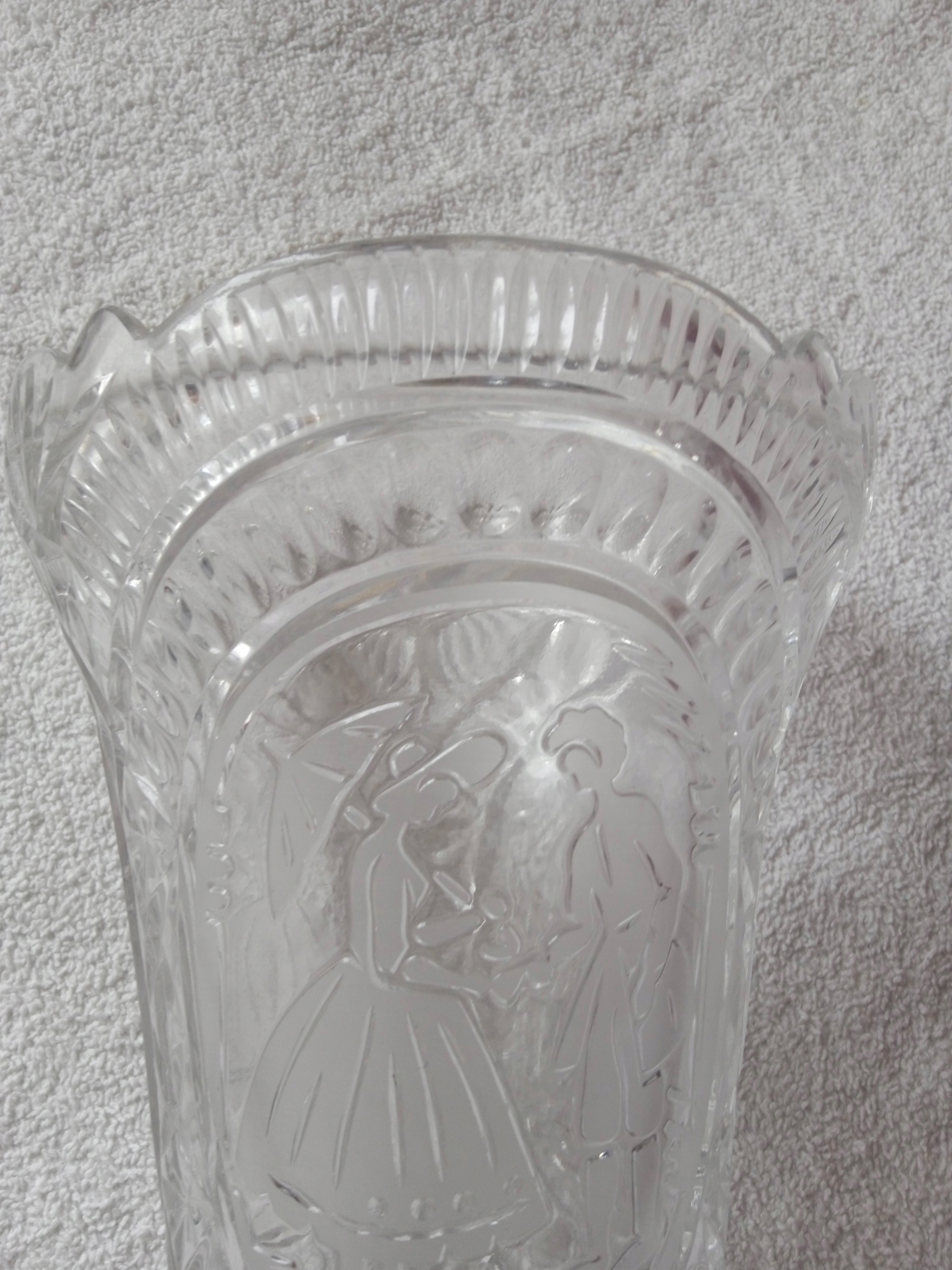Kryształowy wazon z grawerowaną scenką rodzajową.