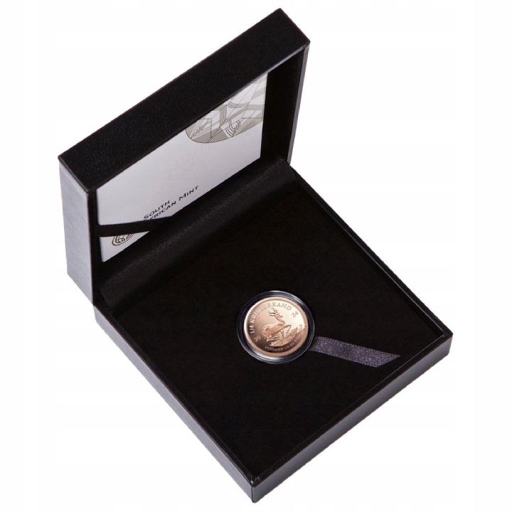 Крюгерранд, найвідоміша та найцінніша інвестиційна монета у світі. Ця колекційна монета викарбувана в 1/4 тройської унції, виготовлена із золота 916 проби з невеликою домішкою міді. Додавання міді підвищує стійкість монети до подряпин, а також надає їй унікальний колір. Більше того, цей унікальний виріб має сертифікат автентичності.