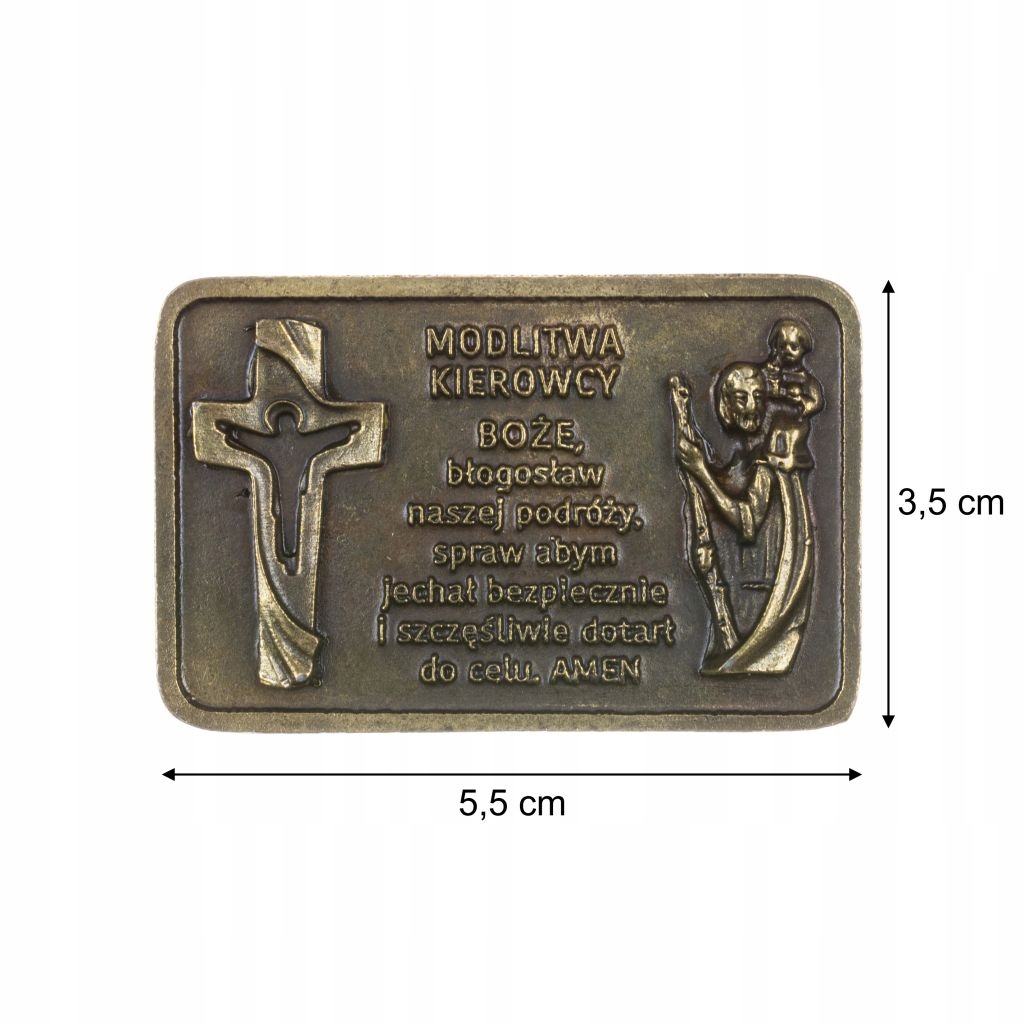 Металева табличка зі святим Христофором і молитвою водія