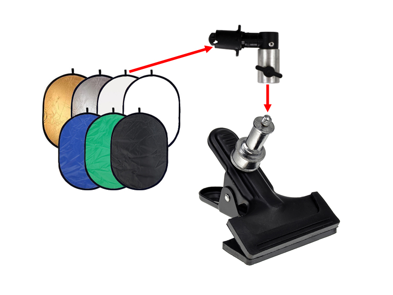 Багатофункціональний тримач з можливістю кріплення відбивача або фону на штативі зі студійним наконечником 16 мм.