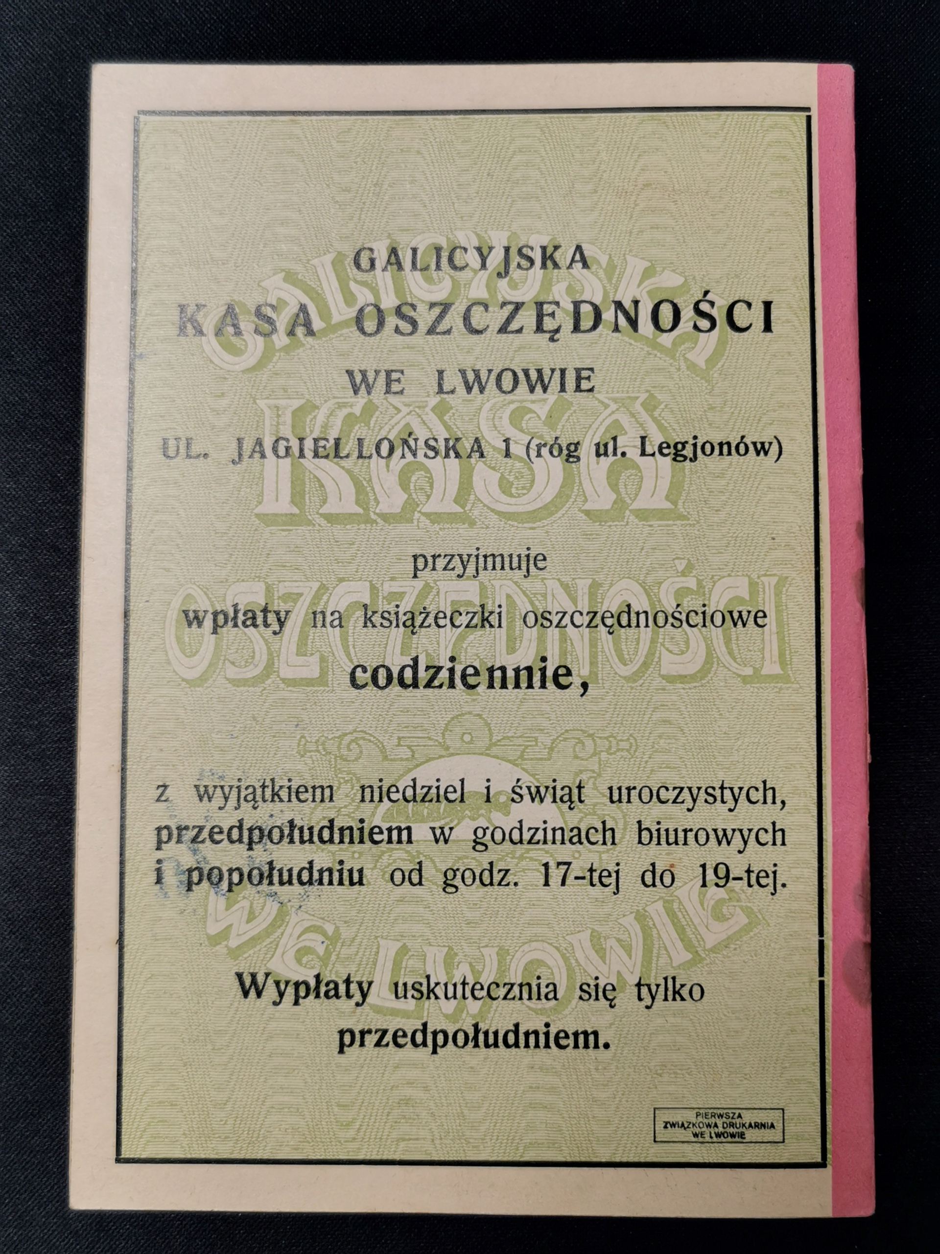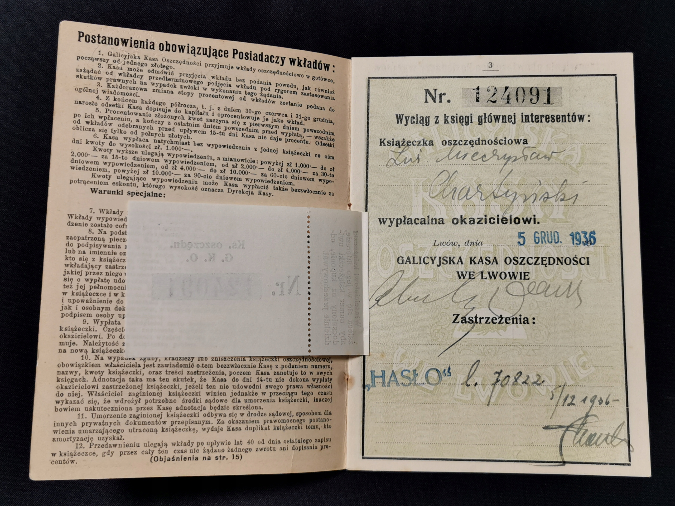 Książeczka Oszczędnościowa Galicyjska Kasa Czynnościowa Lwów 1936