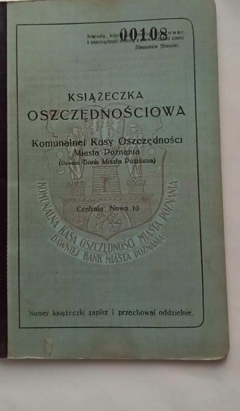 Książeczka oszczędnościowa miasta Poznania 1937 r.