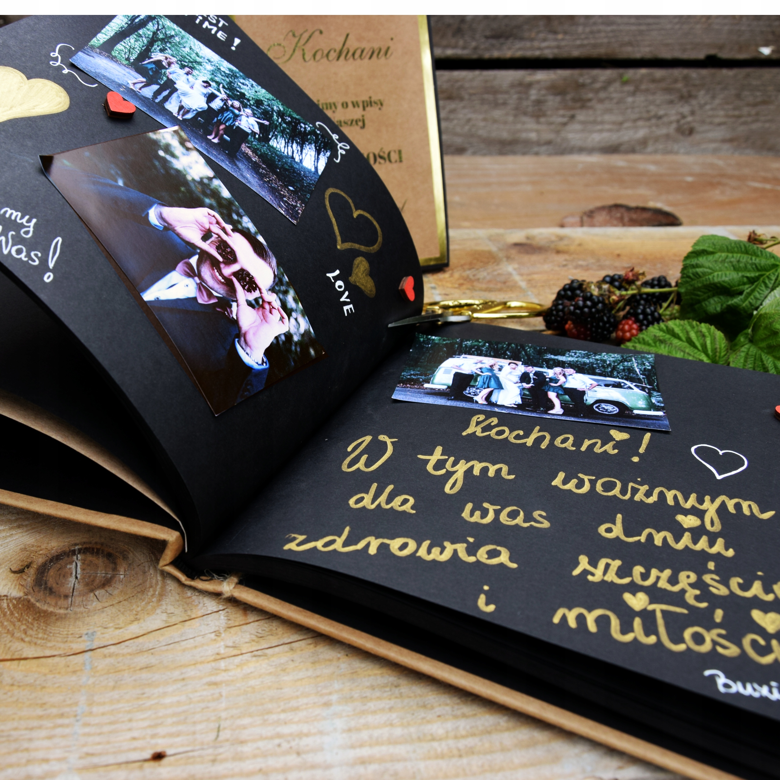 Księga Gości WESELNYCH czarne kartki rustykalna