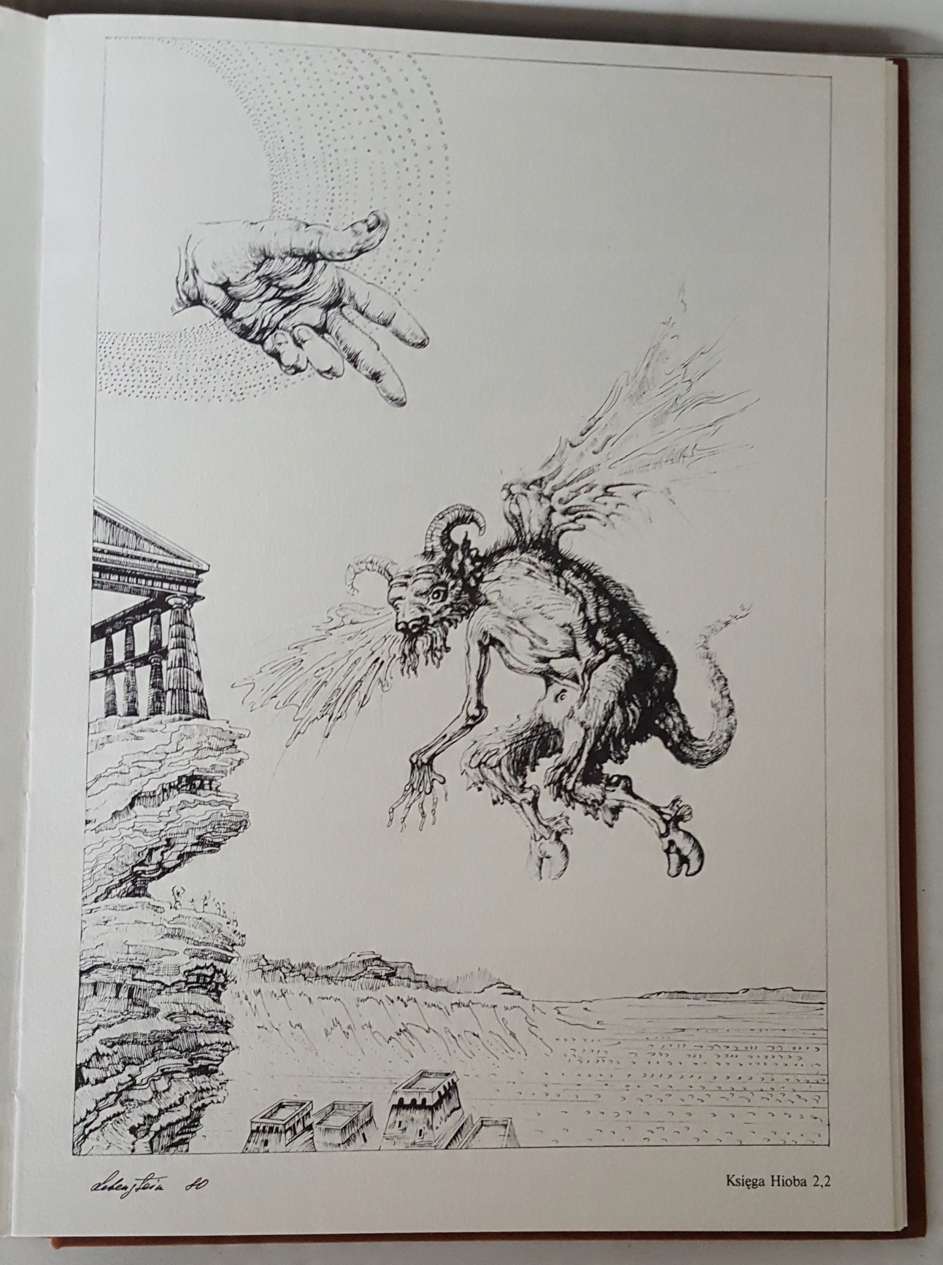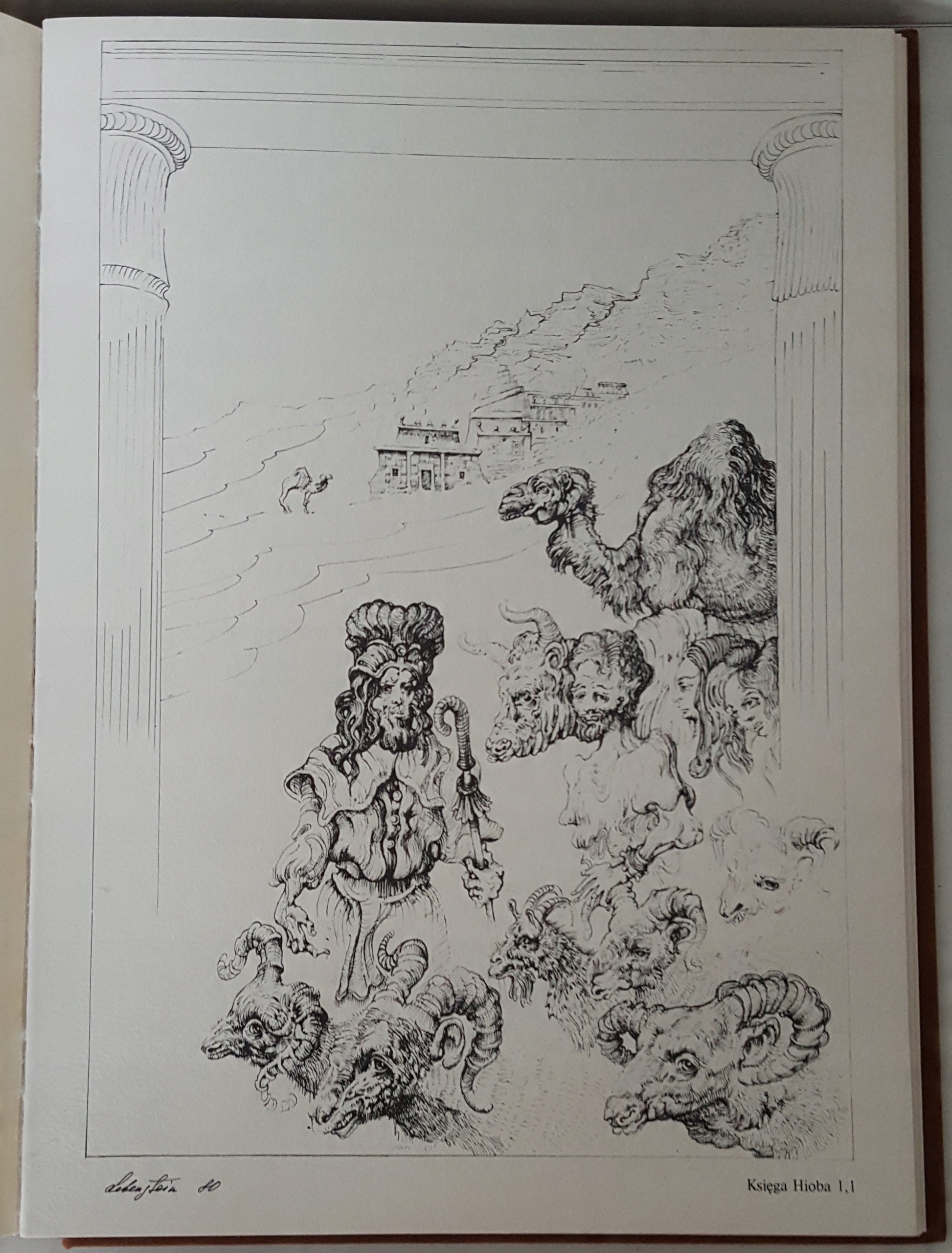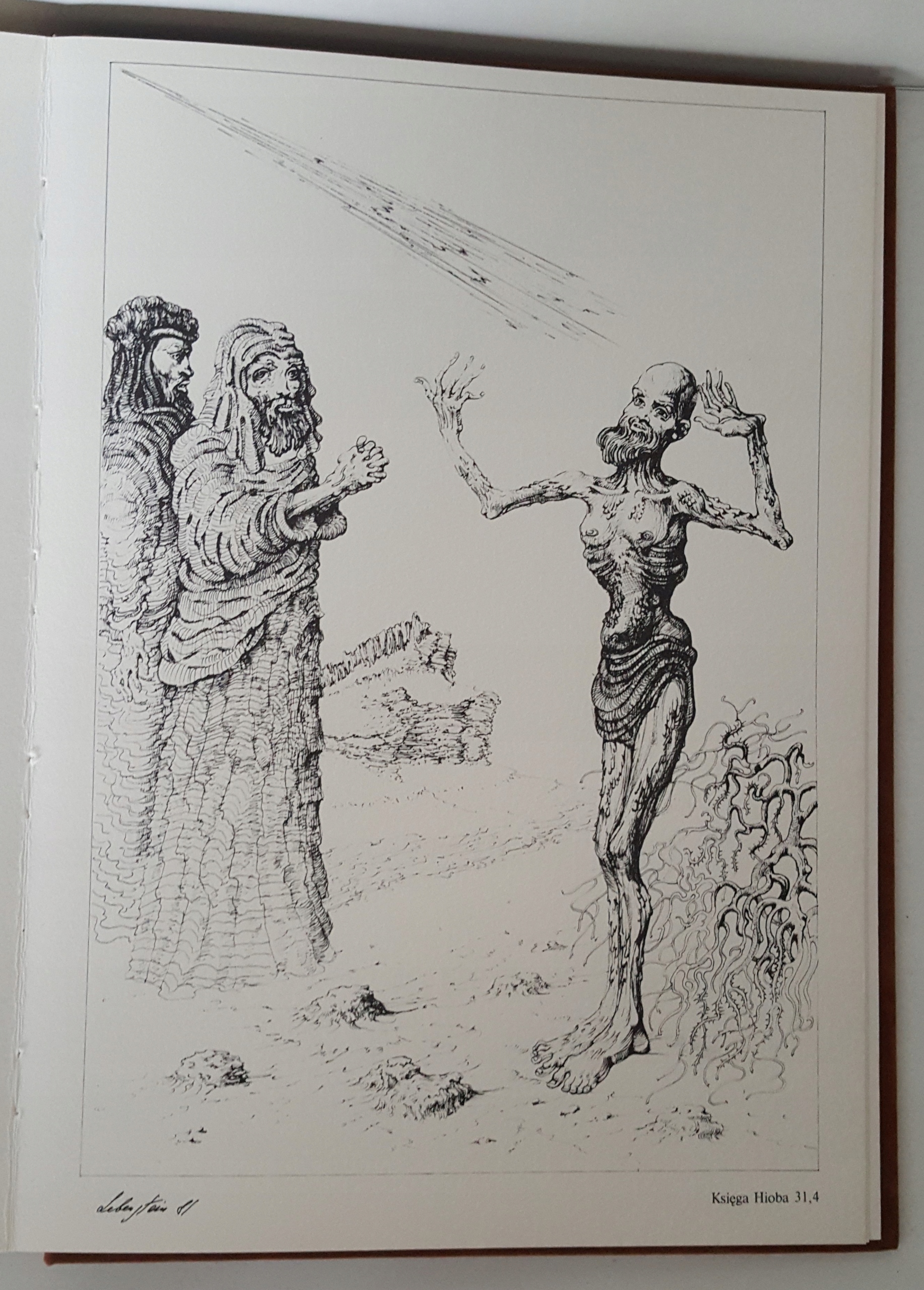 Ювілейне видання Книги Йова, 1000 примірників, присвячене видавництвом Чеславу Мілошу 70-річчя від дня народження. Графічний дизайн Вітольда Урбановича. Книга містить розлогий богословсько-літературний вступ о. Юзефа Садзіка та передмова перекладача. Ілюстрував Ян Лебенштейн - 10 ілюстрацій на всю сторінку. Графічний дизайн – Вітольд Урбанович SAC. Nakł. Éditions du Dialogue, Париж 1981. Розміри: 34,3 х 25 см, 124 сторінки в замшевій палітурці. Дуже хороший стан.