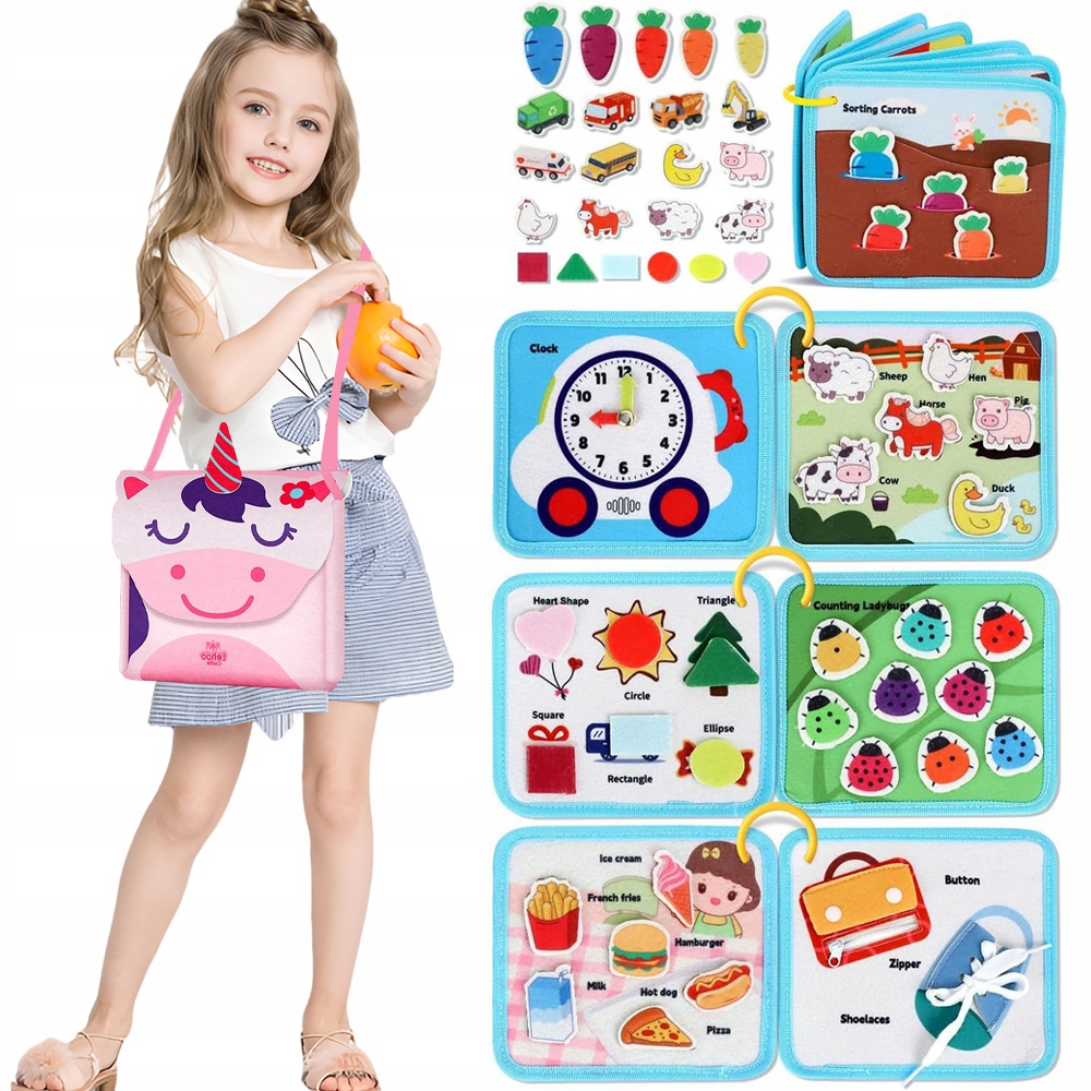 Нещодавно оновлена дошка Montessori Busy Board має більш портативний дизайн і більше вмісту. Красива регульована сумка на плече містить 12 сторінок дошок для занять на 9 тем: життєві навички, числа, кольори, форми, розміри, головоломки, транспортні засоби, лікарні, ресторани та ферми. Унікальний дизайн петлі та пряжки дозволяє легко носити та ділитися. Ваша дитина буде годинами досліджувати та гратися у світі, який викликає цікавість і творчість.