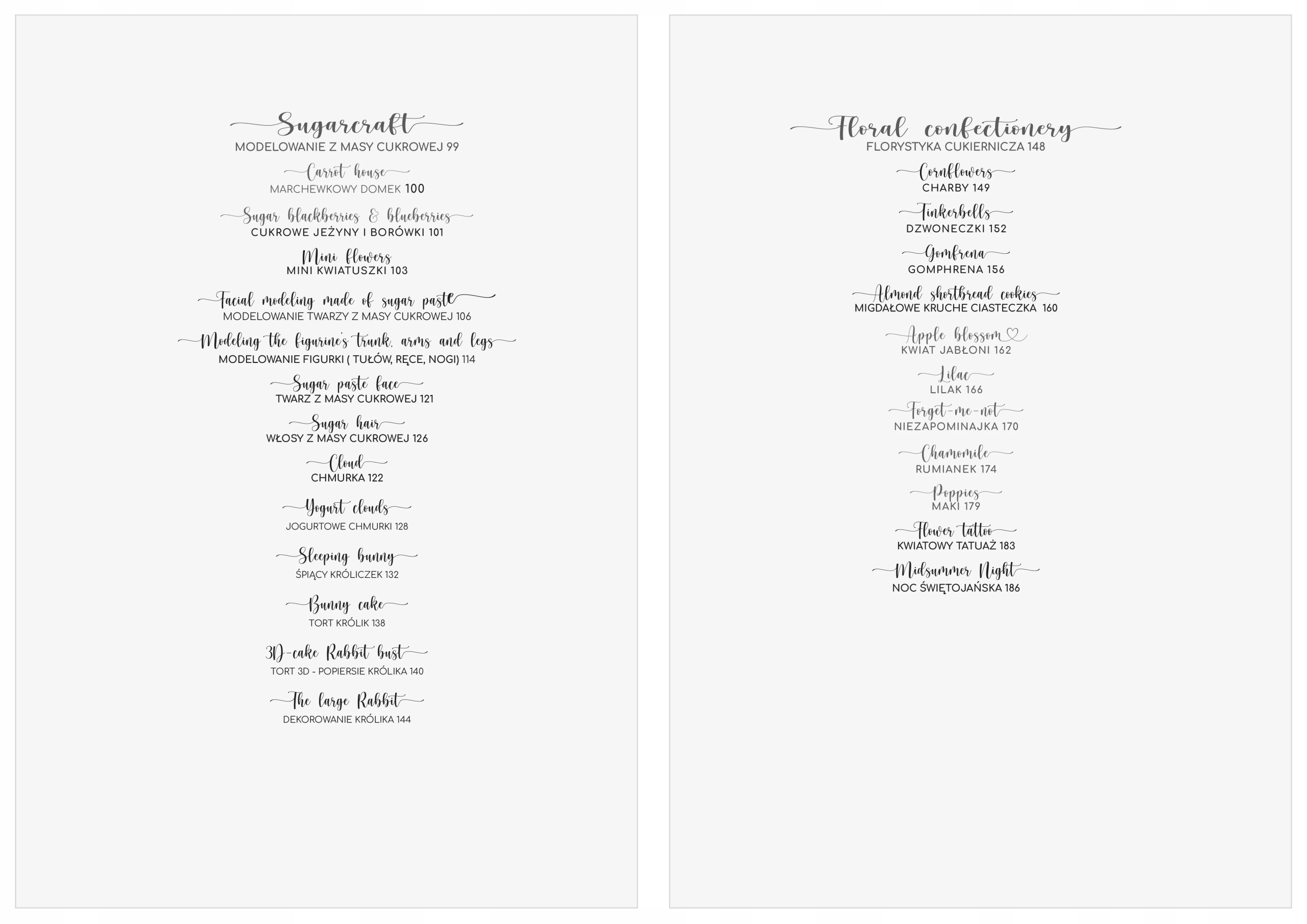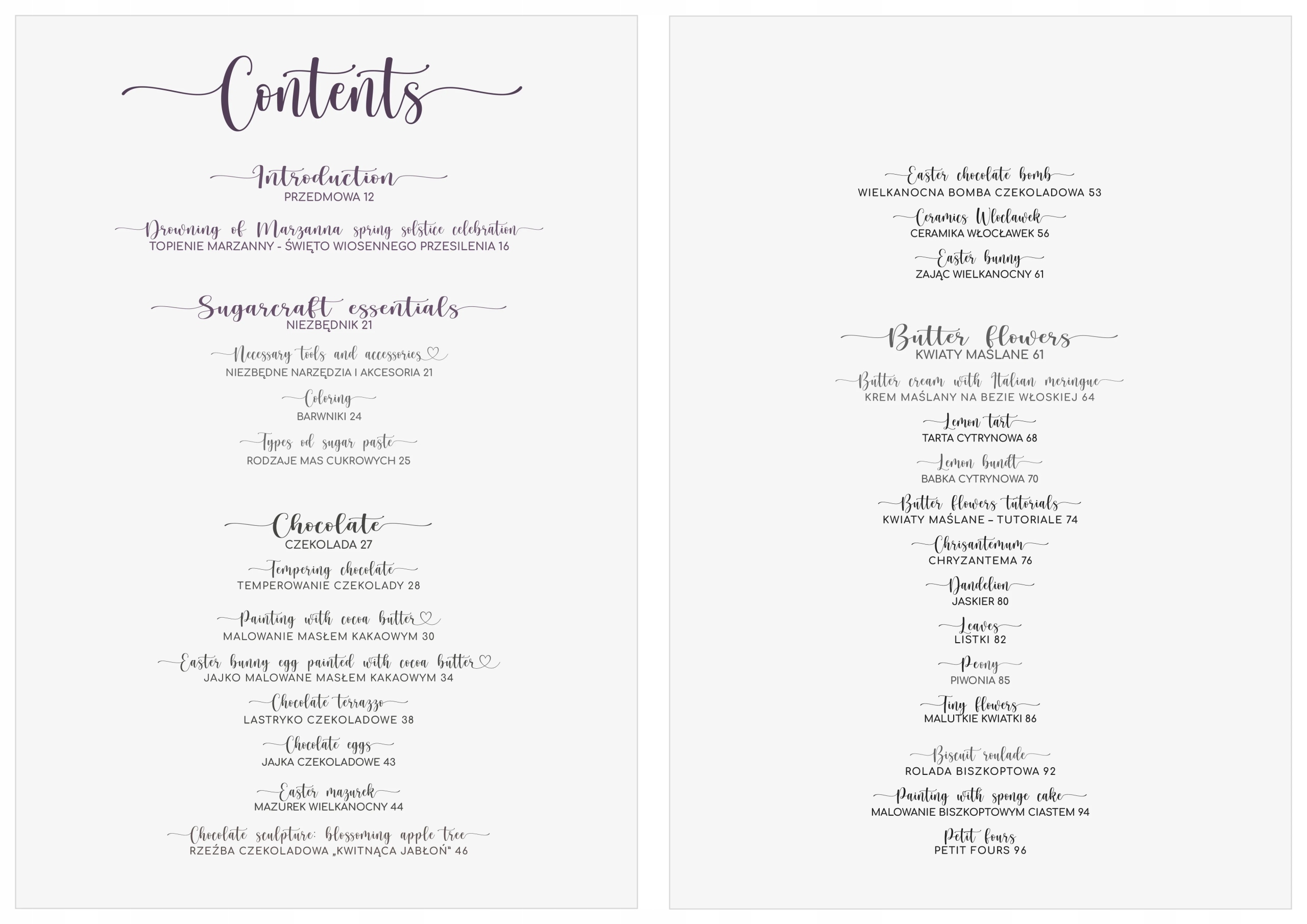 Ми починаємо з шоколаду - ви навчитеся темперувати шоколад, малювати маслом какао, створювати привабливі писанки та мазурки. Але це тільки початок, тому що далі ми переходимо до масляних квітів. У розширенні ви знайдете рецепти тарту та лимонного торта. Jowita також представляє підручники, які крок за кроком покажуть, як створювати різні типи квітів з масла. У наступному розділі йдеться про моделювання за допомогою помадки — ви навчитеся створювати солодкий морквяний будиночок, цукрову ожину та чорницю, а також як моделювати. особи і фігурки з помадки. Також буде багато ідей для милих прикрас для тортів у стилі зайчиків, хмарок та інших весняних натхненників. Останній розділ – це кондитерська флористика, де ви навчитеся технікам і рецептам створення красивих квітів з цукрової маси. Jowita показує, як створювати волошки, дзвіночки, маки та ромашки – ідеальні для прикраси тортів та тортів. Запрошуємо вас поринути в чарівний світ Sugar Wonderland SPRING. Ця книга є натхненням не лише для кондитерів, а й для всіх, хто любить красиві прикраси ручної роботи. Не зволікайте та замовляйте найкрасивішу книгу в світі вже сьогодні.