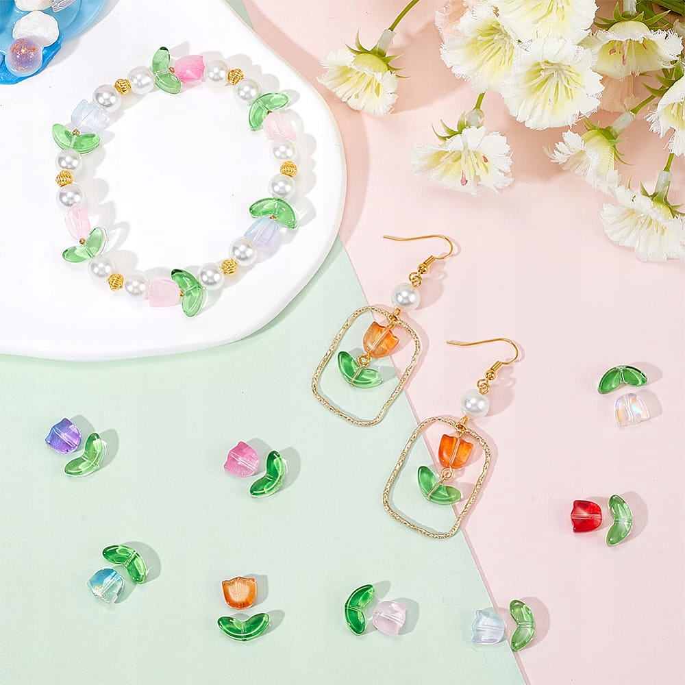 KSZ32 Намистини скляні листя 10 шт та TULIP квітка тюльпана 10 шт
