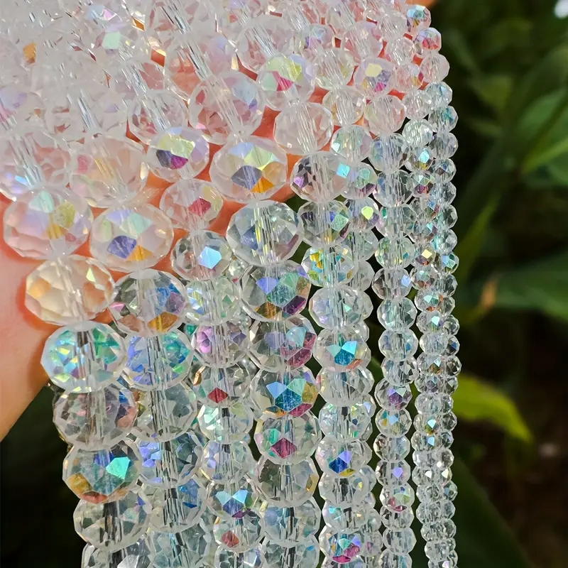У упаковці фольги є 30 намистин, кришталевий AB. Ідеально, якщо ви робите браслети та інші ручні ювелірні вироби, особливо персоналізовані. Намовники виготовлені з скла, не втрачають кольору, прекрасні, а деякі чудово переходять на веселку. Вони чудові, щоб зробити ключові кільця, підвіски та закладки.