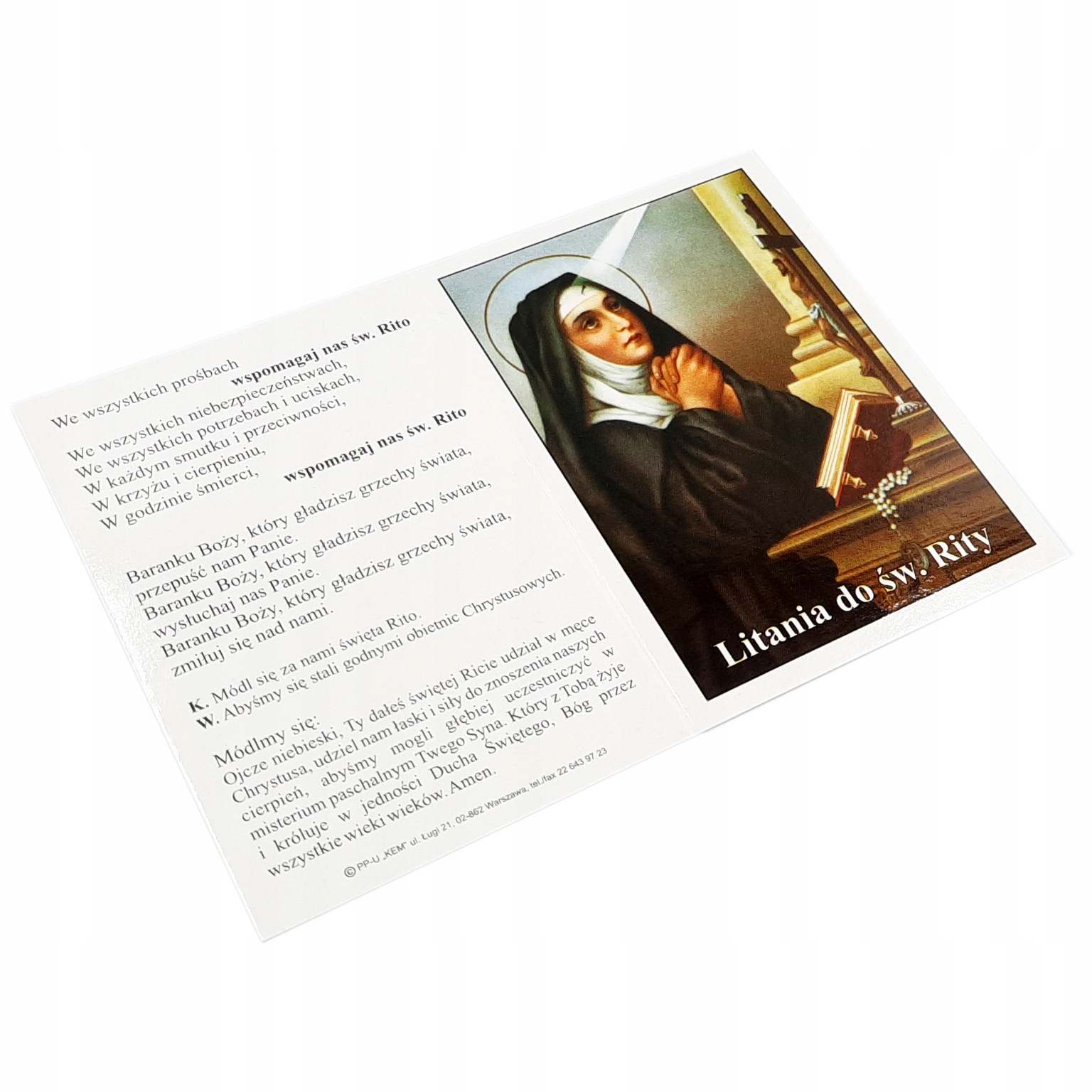 Кишенькове католицьке видання, що містить інструкції з читання Літанії до св. Рита з Касії. На брошурі також надруковано барвисте зображення покровительки найважчих справ.