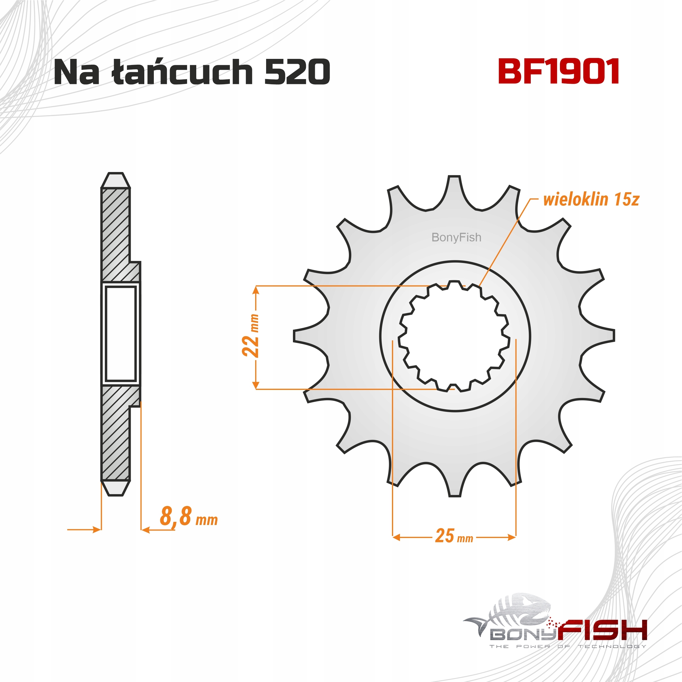 Опис продукту - Набір приводів складається з високоякісних елементів. Фірмові зірочки JT Sprockets на польському ринку вже багато років і завдяки найкращій якості японської високовуглецевої сталі, з якої вони виготовлені, та найвищій якості виготовлення, вони завоювали польський ринок. У набір входить ланцюжок Bonyfish, який характеризується відмінним співвідношенням ціни та якості. Ці ланцюги виготовлені за японською технологією, що забезпечує високу якість. Завдяки цій технології отримана міцність ланцюга перевищує міцність більш брендових виробників.