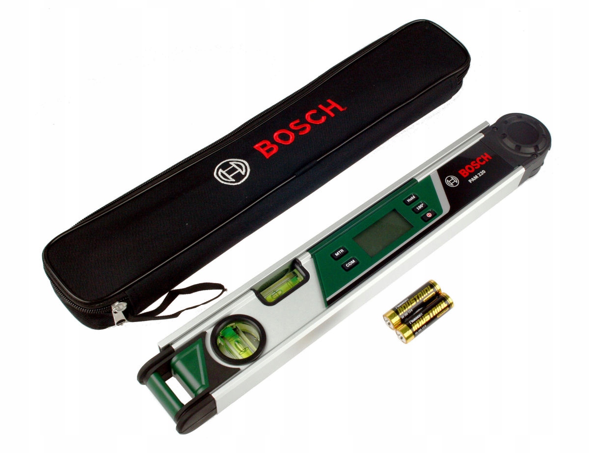 Цифровий транспортир BOSCH, модель PAM 220, обчислює кути дуже точно, є швидшим, точнішим і, головне, економнішим, ніж інші методи вимірювання. Він надзвичайно простий у використанні і не тільки вимірює кути з точністю +/- 0,2°, але й точно передає їх на інші елементи. Завдяки транспортиру PAM 220 виключається ризик допущення помилок через громіздке використання шаблонів і виправлення помилок побудови, що виникають внаслідок неправильного розрахунку кутів. Просто ввімкніть транспортир, зчитайте результат вимірювання, перенесіть його на елемент і все. Великий цифровий індикатор на передній панелі приладу дозволяє зчитувати результат вимірювання в будь-яких умовах. Завдяки міцній конструкції кутомір BOSCH PAM 220 можна використовувати в складних будівельних умовах. Новим є вбудовані математичні функції, що полегшують співпрацю з торцювальними пилками (торцовочними пилами), завдяки яким транспортир дуже швидко розраховує та відображає на дисплеї, який кут скосу потрібно встановити на торцювальній пилці, щоб отримати заданий кут. Ця функція дозволяє автоматично обчислювати прямі кути, кути подвійного скосу та кути нахилу на торцювальній пилці.
