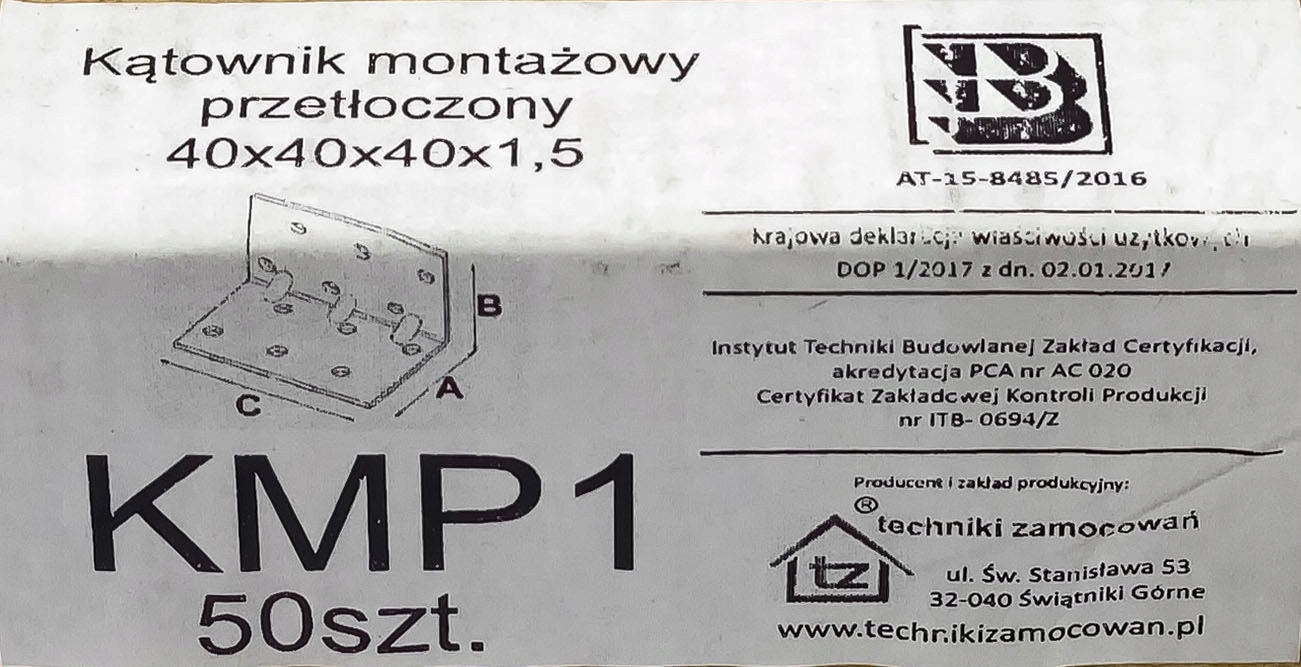 Kątownik montażowy przetło KMP1 40x40x40x1,5 50szt