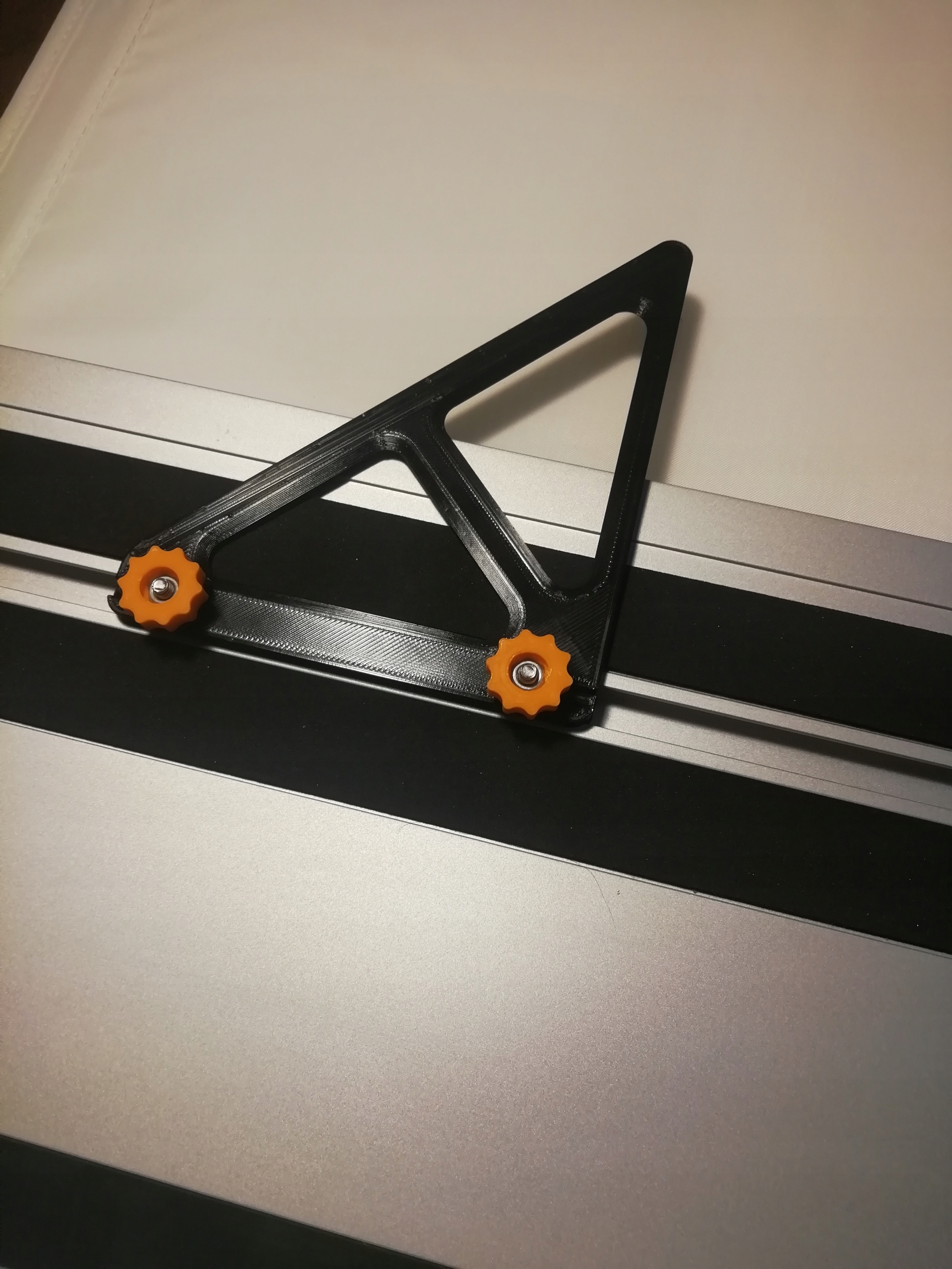 Кутовий кронштейн дозволяє швидко розташувати рейку перпендикулярно або під кутом 45° до вибраного краю . Після монтажу в направляючу ви можете швидко повернути його в праву або ліву сторону. Підходить до всіх напрямних Makita. Можна використовувати з обох сторін рейки. Кутник кріпиться на паз 12х6 мм.
