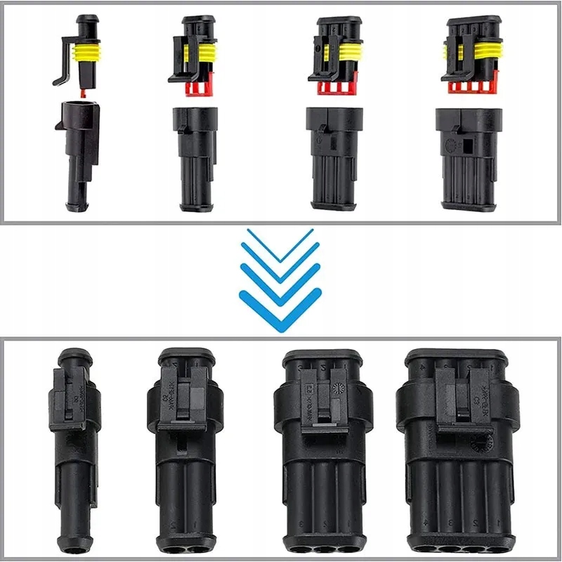- 4Pin(6 комплектів) 6 штекерів корпусів, 6 штекерів корпусів, 24 шт. x чоловічий штифт, 24 x гніздо, 48 x силіконовий водонепроникний штекер