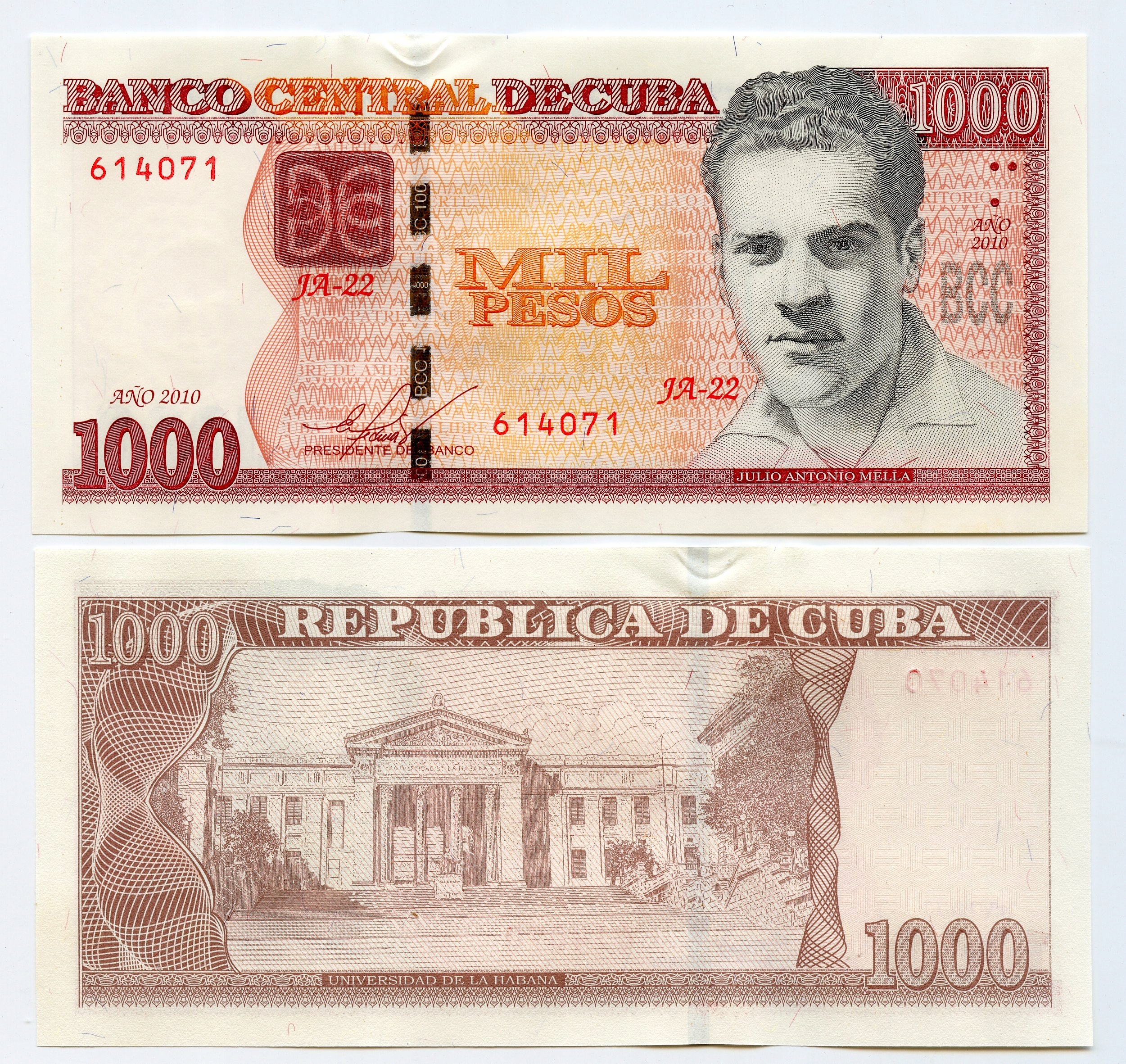 Kuba Cuba 1000 Pesos 2010 P-132 UNC Julio Antonio Mella