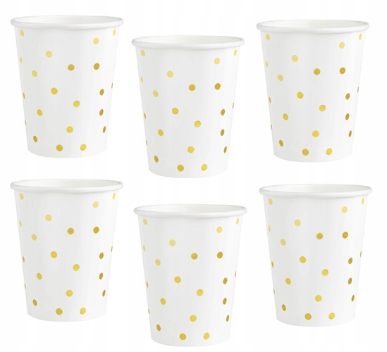 KUBECZKI PAPIEROWE URODZINY TORT BIAŁY ZŁOTY 6x
