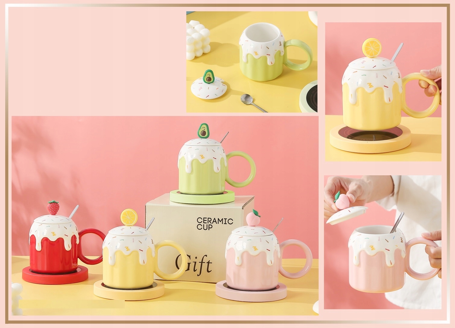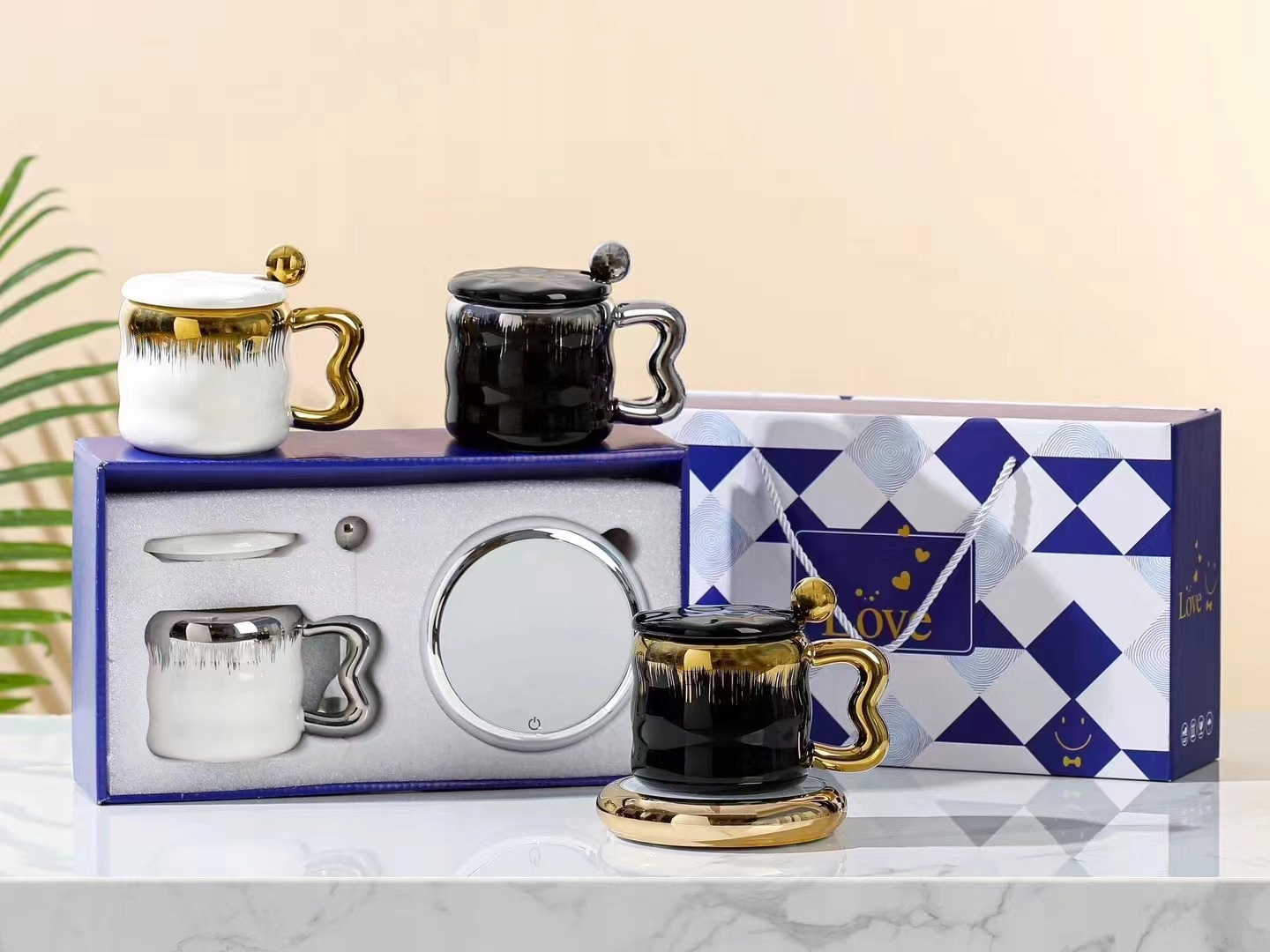 KUBEK DO KAWY HERBATY + Podgrzewacz USB + Łyżka Prezent KUBKI NA WALENTYNKI