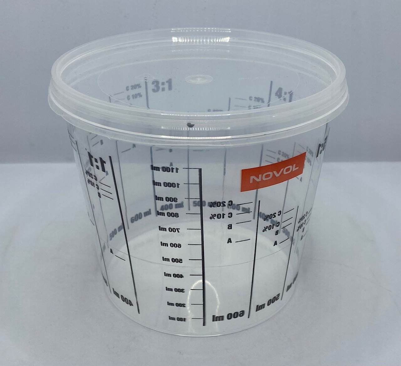 Стаканчики для фарби NOVOL полегшують приготування та змішування лаків і ґрунтовок у відповідних пропорціях. Вони допомагають заощадити час, необхідний для миття багаторазових чашок. Продукт доступний у 4 різних ємностях, адаптованих до розміру конкретного ремонту. Для кожного розміру доступна кришка, що дозволяє щільно закривати та зберігати підготовлений лак або праймер.