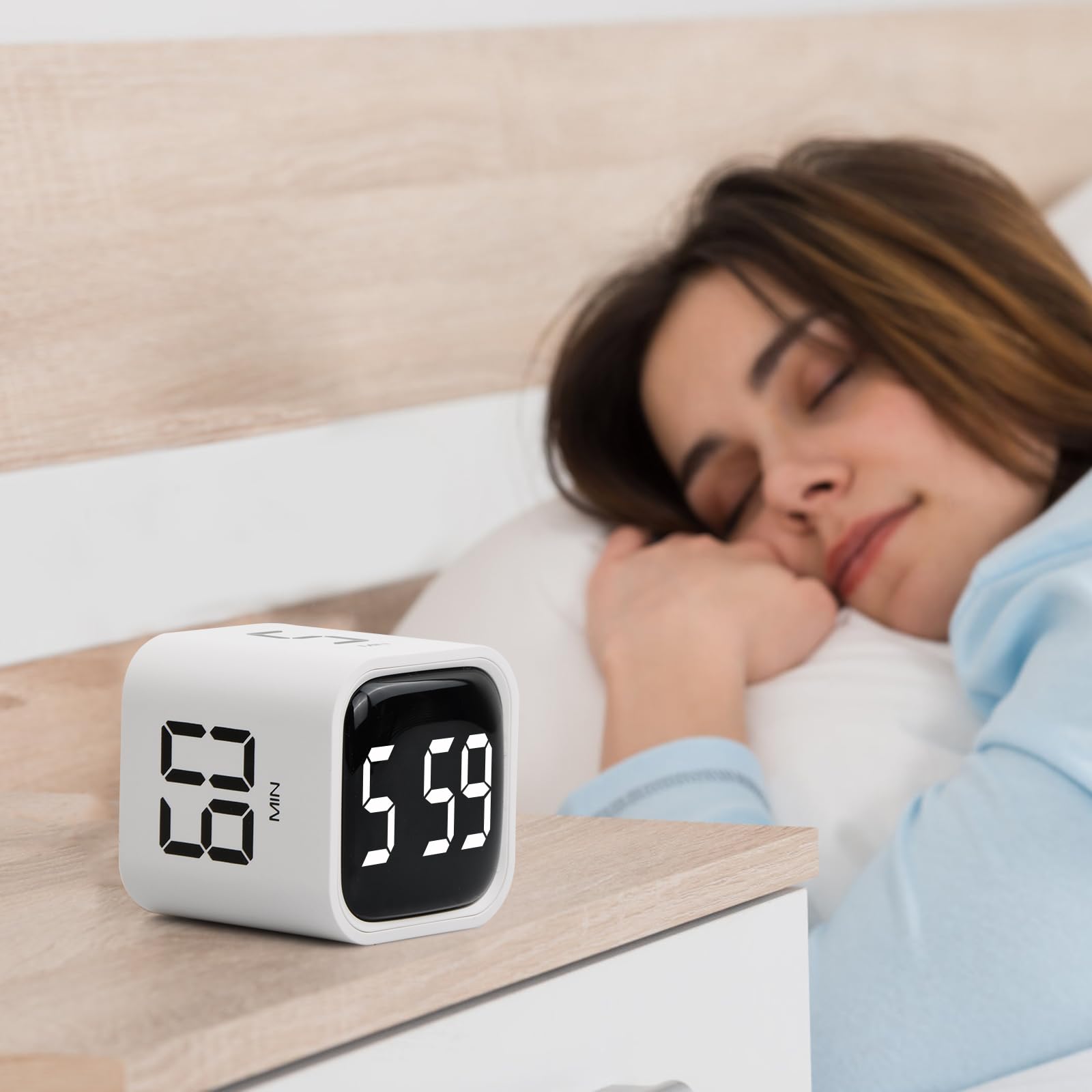 Цей кубічний таймер приймає тиху конструкцію під час вимірювання часу і має три режими об'єму (тихі/вібрації, 70-80 дБ низький об'єм, високий об'єм 90-100 дБ). У гравітаційному режимі числа завжди підтримують правильний напрямок відповідно до напрямку обертання. Поверніть дисплей вгору, і таймер зупиниться. Поверніть дисплей, і таймер скине до нуля.