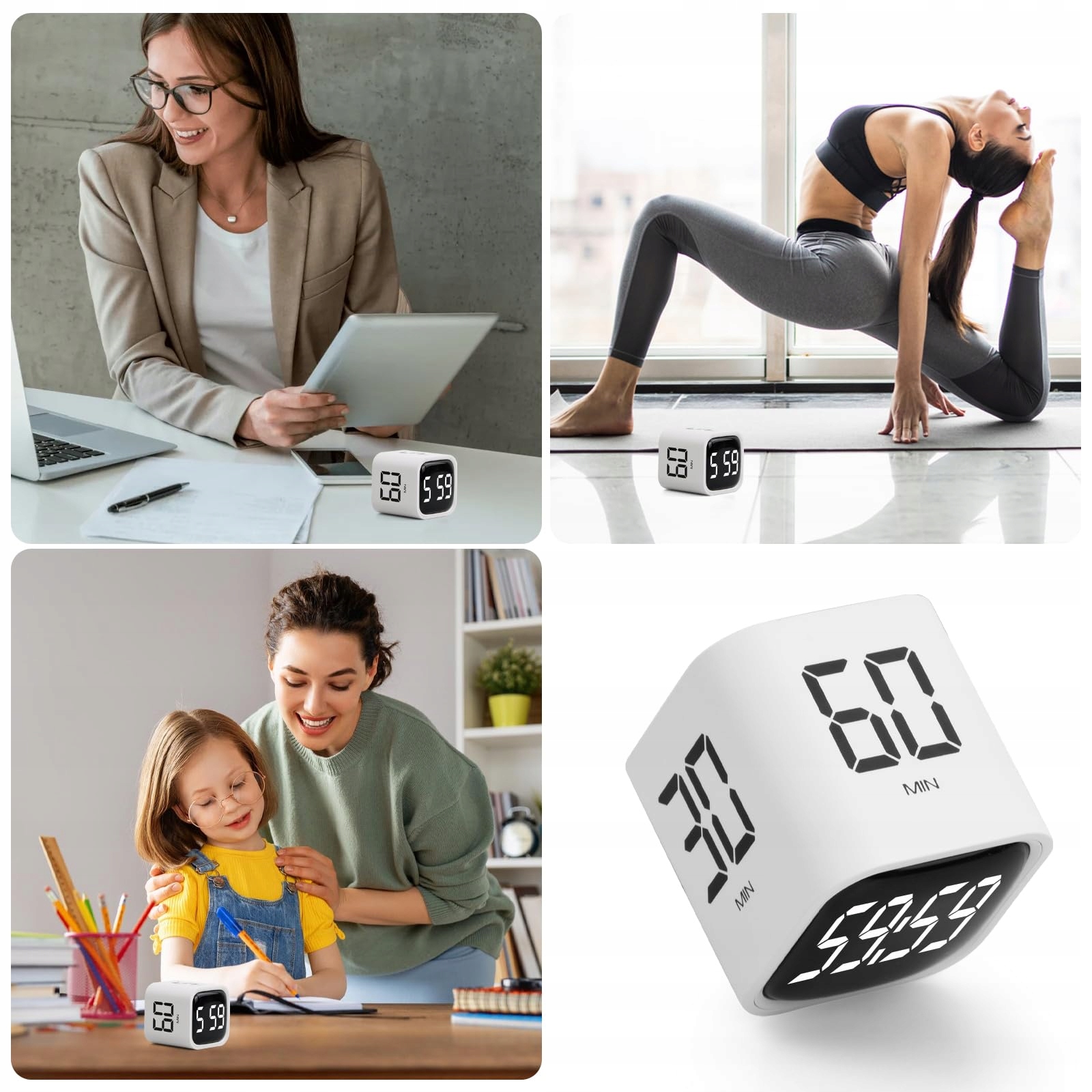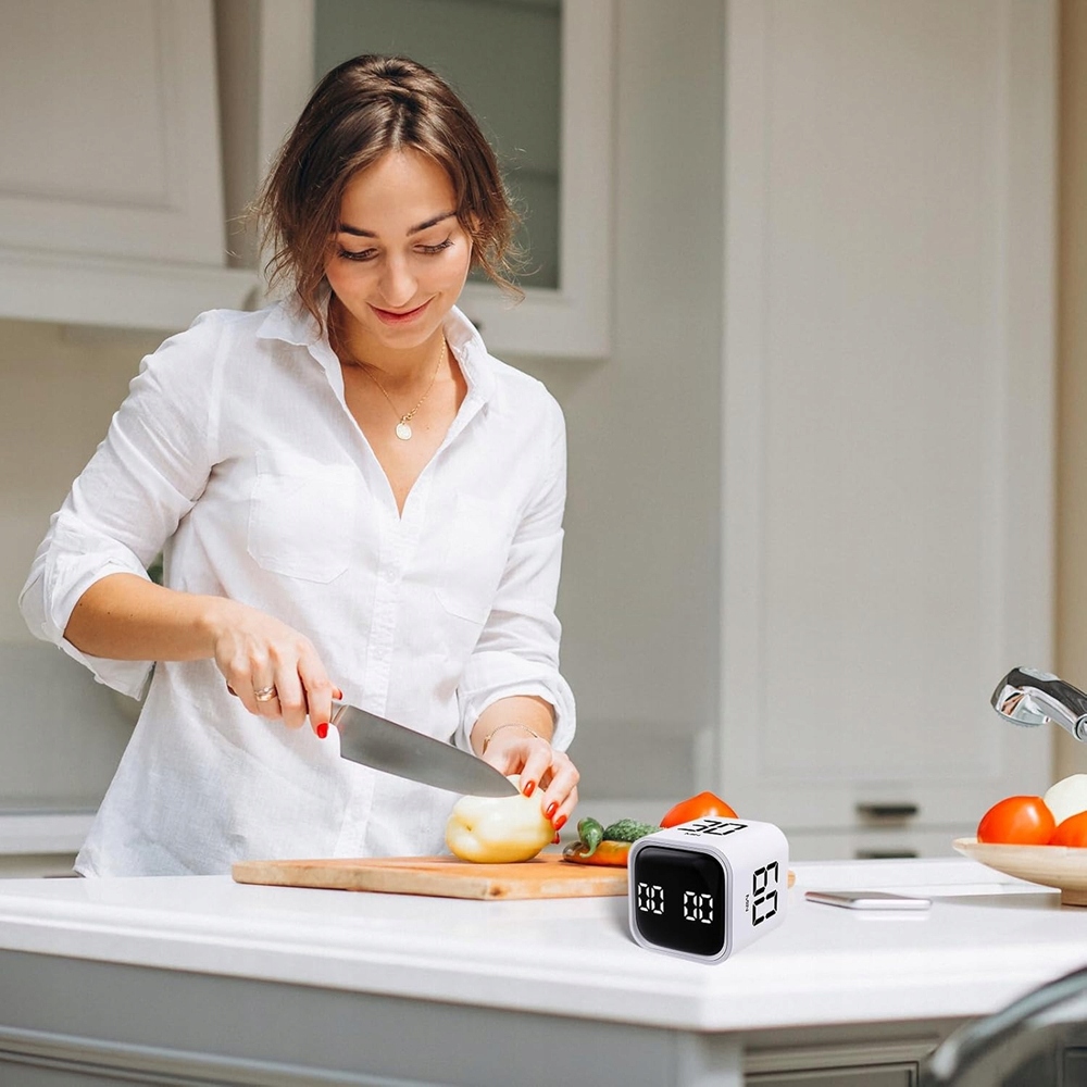 Таймер, укладений кубами з гравітаційним датчиком, підходить для різних застосувань, таких як офіс, робота, зустріч, діти, читання, спорт, кулінарія тощо.