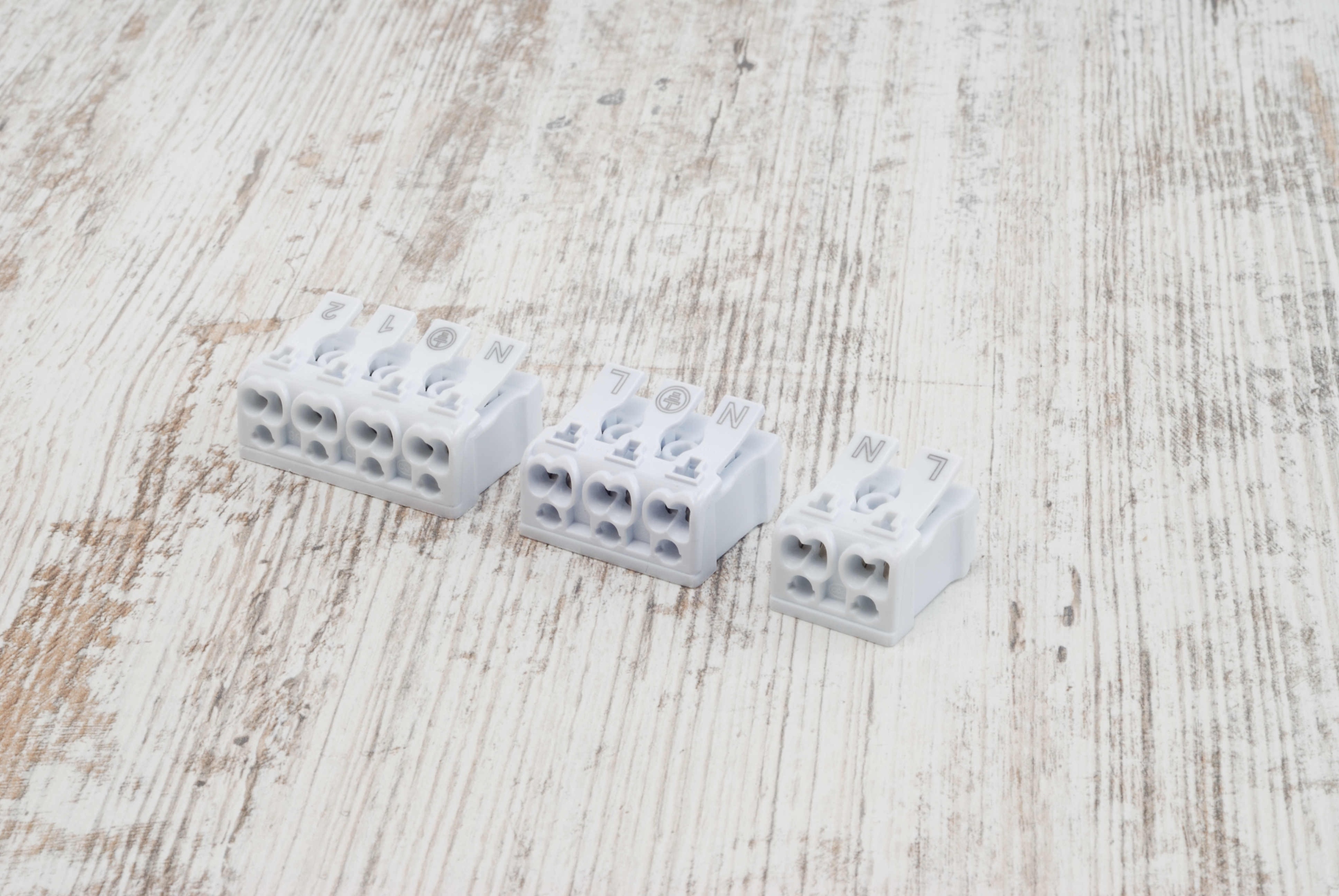 З’єднувачі мають позначки для з’єднання проводів N L та PE, що полегшує остаточне встановлення в лампах.