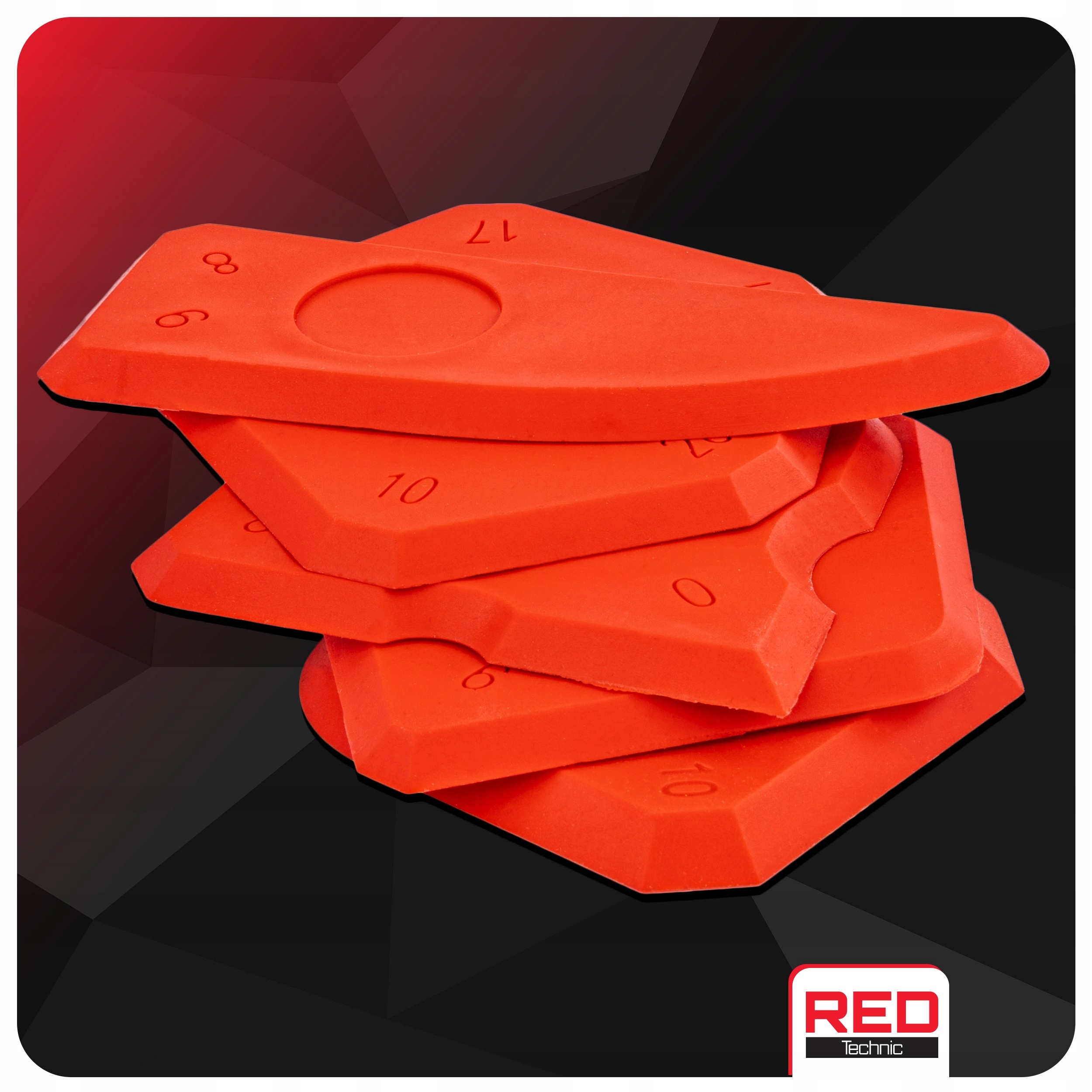 Набір червоної техніки - це набір інструментів для точного згладжування силікону, суглобів та акрилу - 7 профілів, шпателя, скрепер та поради щодо застосування. Зроблені з міцного, гнучкого пластику, вони не малюють поверхонь і їх легко очистити. Ергономічна форма забезпечує зручність та точність роботи, гарантуючи професійну обробку кожного зварювання.