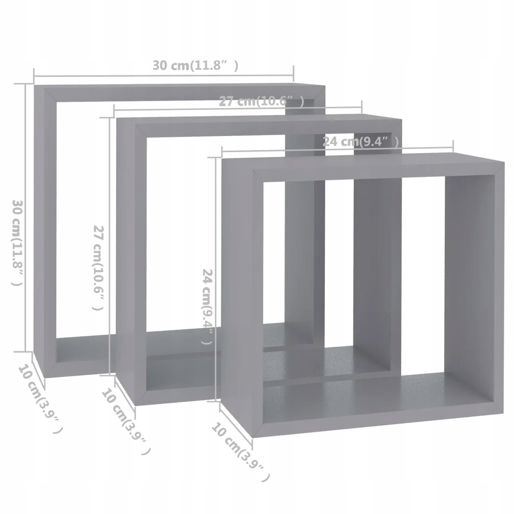 Кубики настінних полиць, 3 шт, сірий, MDF