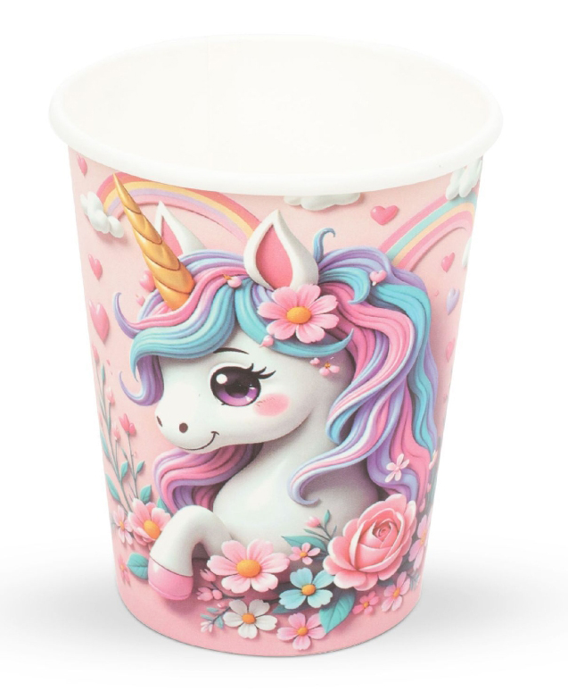 РОЖЕВИЙ ЄДИНОРІГ ПАПЕРОВІ СТАКАНКИ, прикраси до дня народження, 8 шт. EF w2