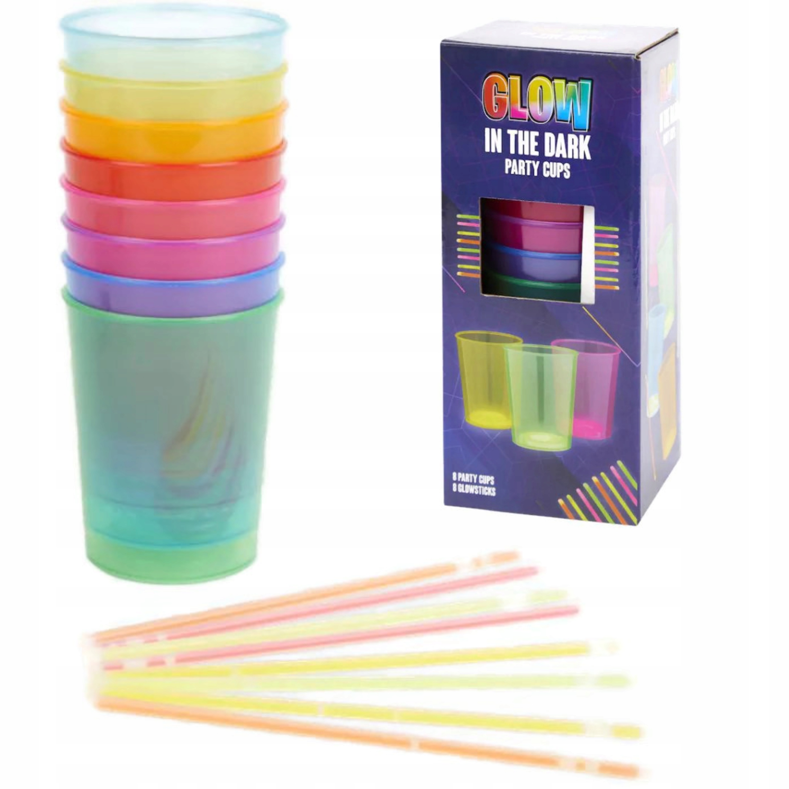 Набір чашок для вечірок, що світяться з соломинками - GLOW - 9 чашок + 8 трубочок, що світяться