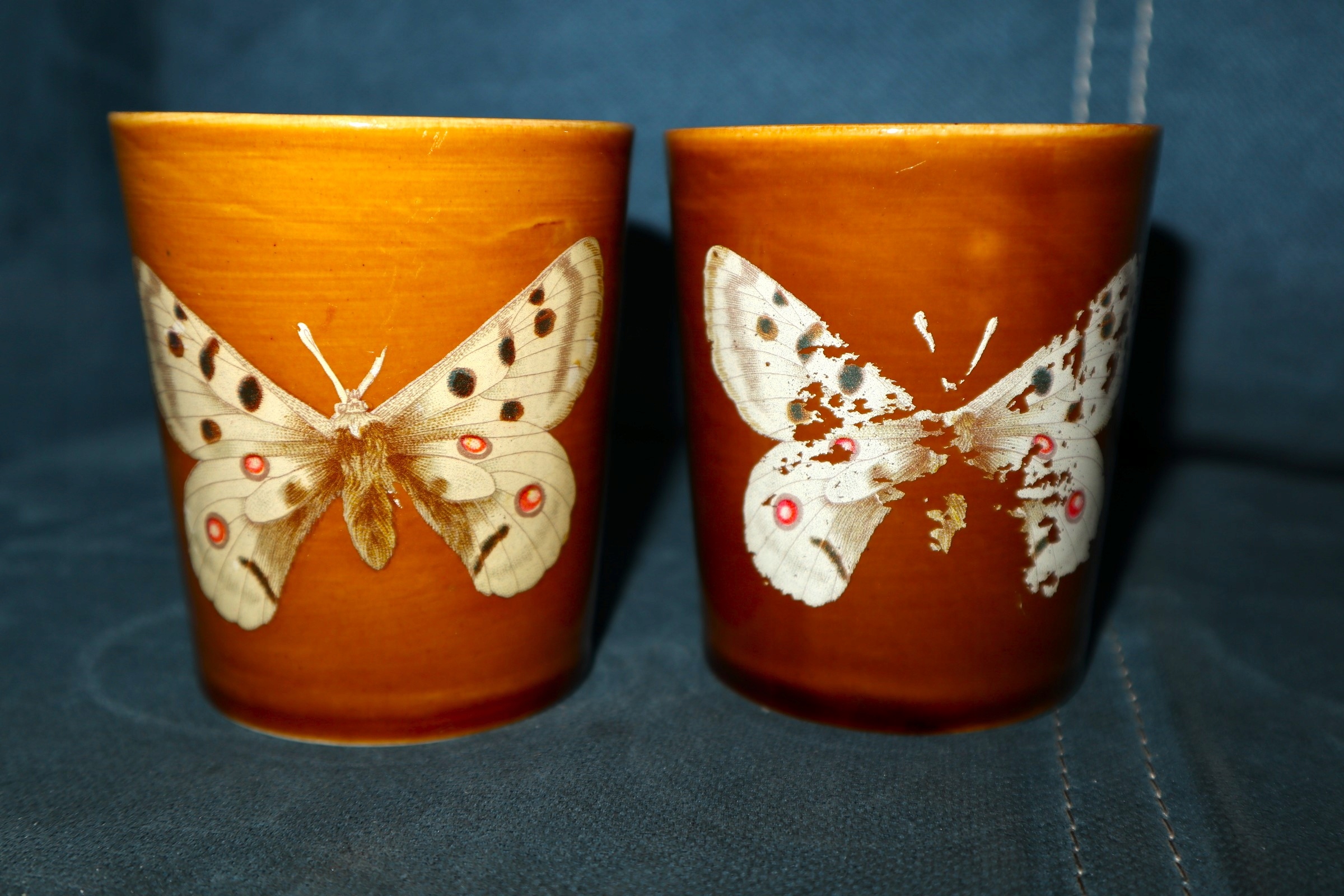 НАБІР З 2 ГРУЖКІВ ПРУШКОВОГО ПОРЦЕЛІТУ, ВИСОТА 9,5 см. ГРУЖКИ МАЮТЬ ЗВИЧАЙНІ СЛІДИ ВИКОРИСТАННЯ. СТАН ЯК ПОКАЗАНО НА ДОДАНОМУ ФОТО. ЦІНА ЗА 2 шт