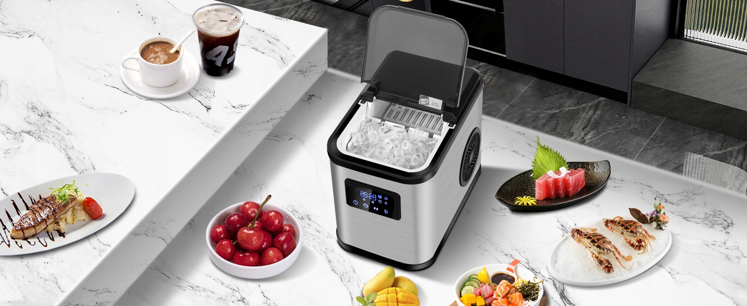 Продуктивність - 9 кубиків льоду у вигляді бурового протягом 9,5 хв. І 12-15 кг протягом 24 годин, ідеально підходить для невеликих садових або коктейльних подій.