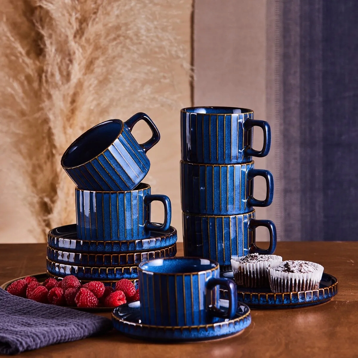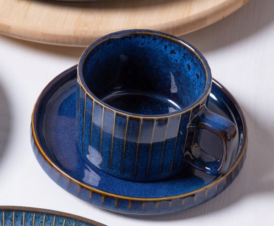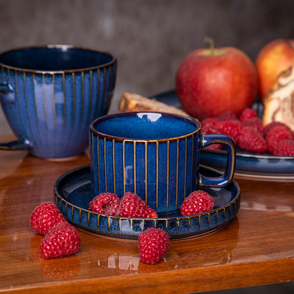 його глибокий, благородний колір не тільки надає таблиці складний характер, але й підкреслює естетику поданих страв. Універсальність цього столу робить його ідеально поєднуючи з різними стилями інтер’єру, додаючи як щоденні страви, так і урочисті випадки унікальності. Порцелянова довговічність гарантує, що посуд буде супроводжувати нас протягом багатьох років, зберігаючи свою унікальну елегантність. Для закоханих класики з натяком на сучасність, для людей, які цінують високу якість і як ідеальний подарунок. Колекція реактивних смуг - це вибір, який поєднує функціональність, естетику та довговічність. Завдяки цьому кожна страва стає унікальним досвідом, і стіл набуває нового, розкішного виміру.