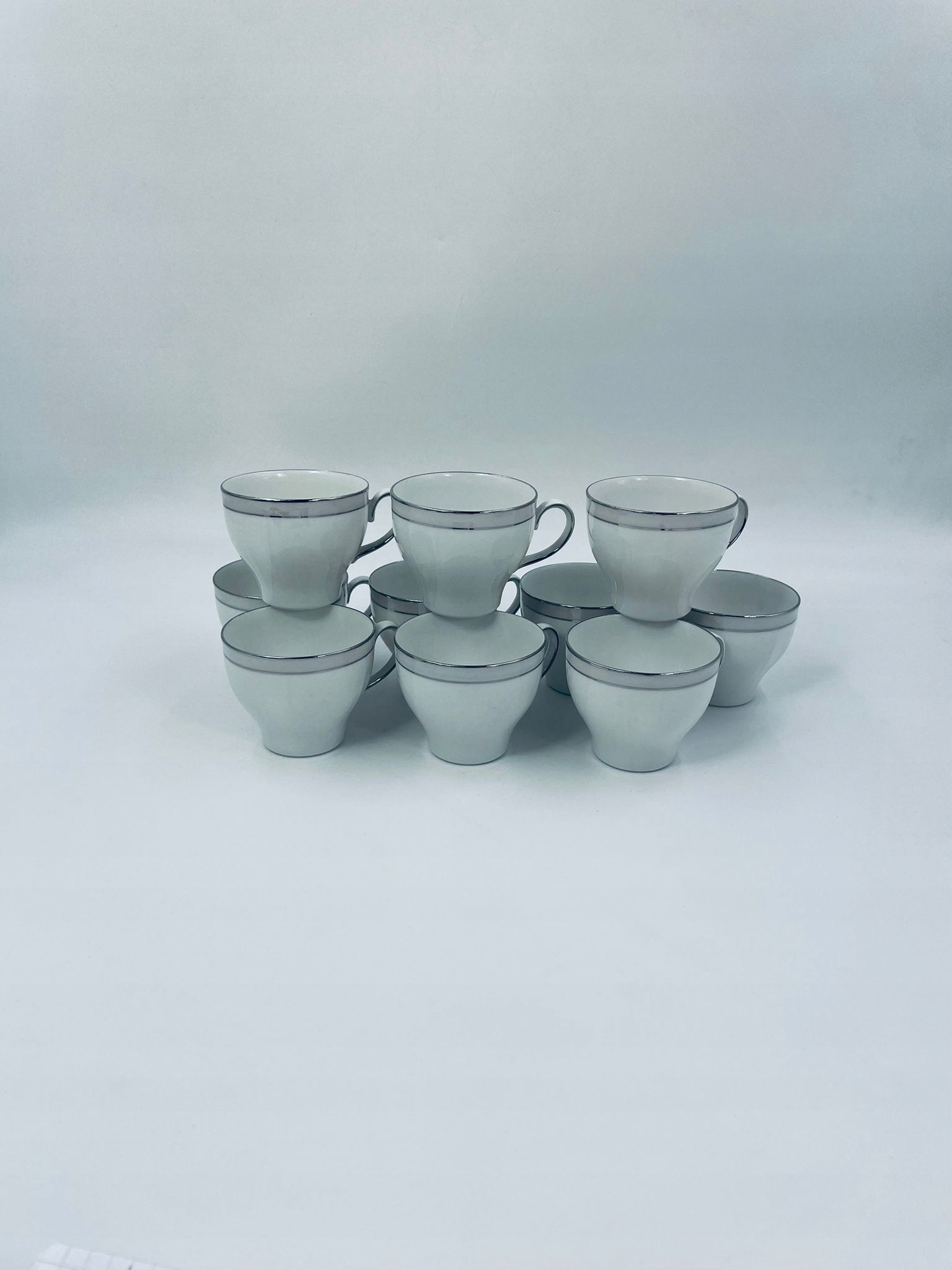 Кубок колекціонера Ешенбаха Баварії, виготовлена з високоякісного білого порцеляни. Чашка, прикрашена сірою смугою у верхній частині, закінчена срібним кольором на краю.