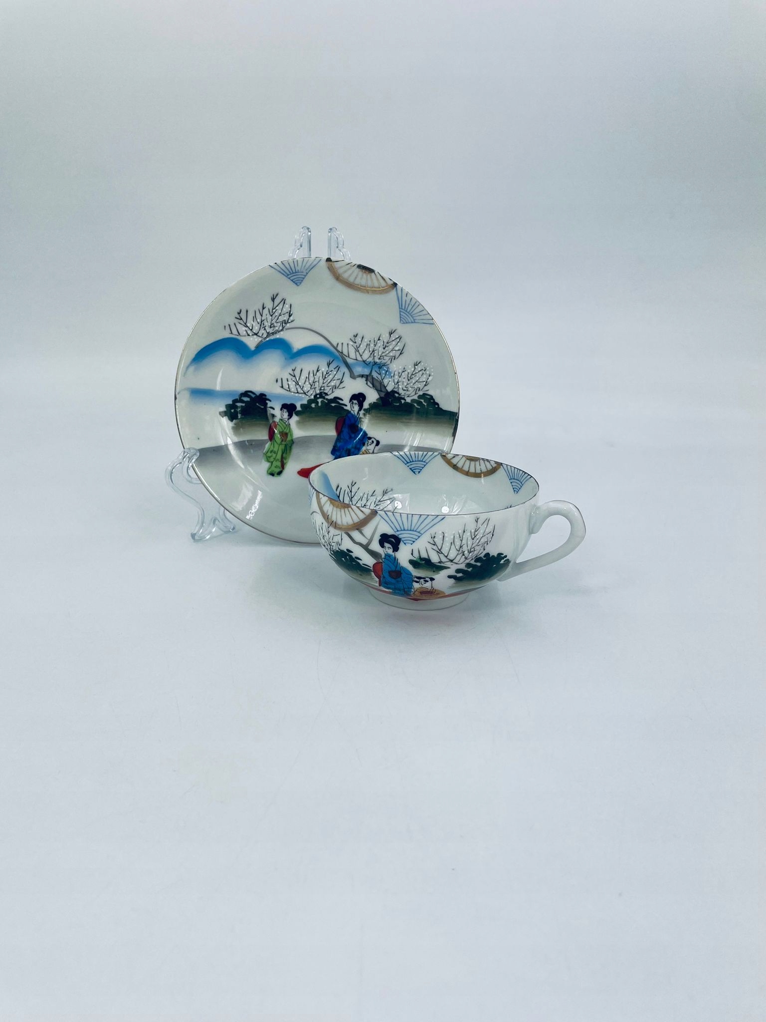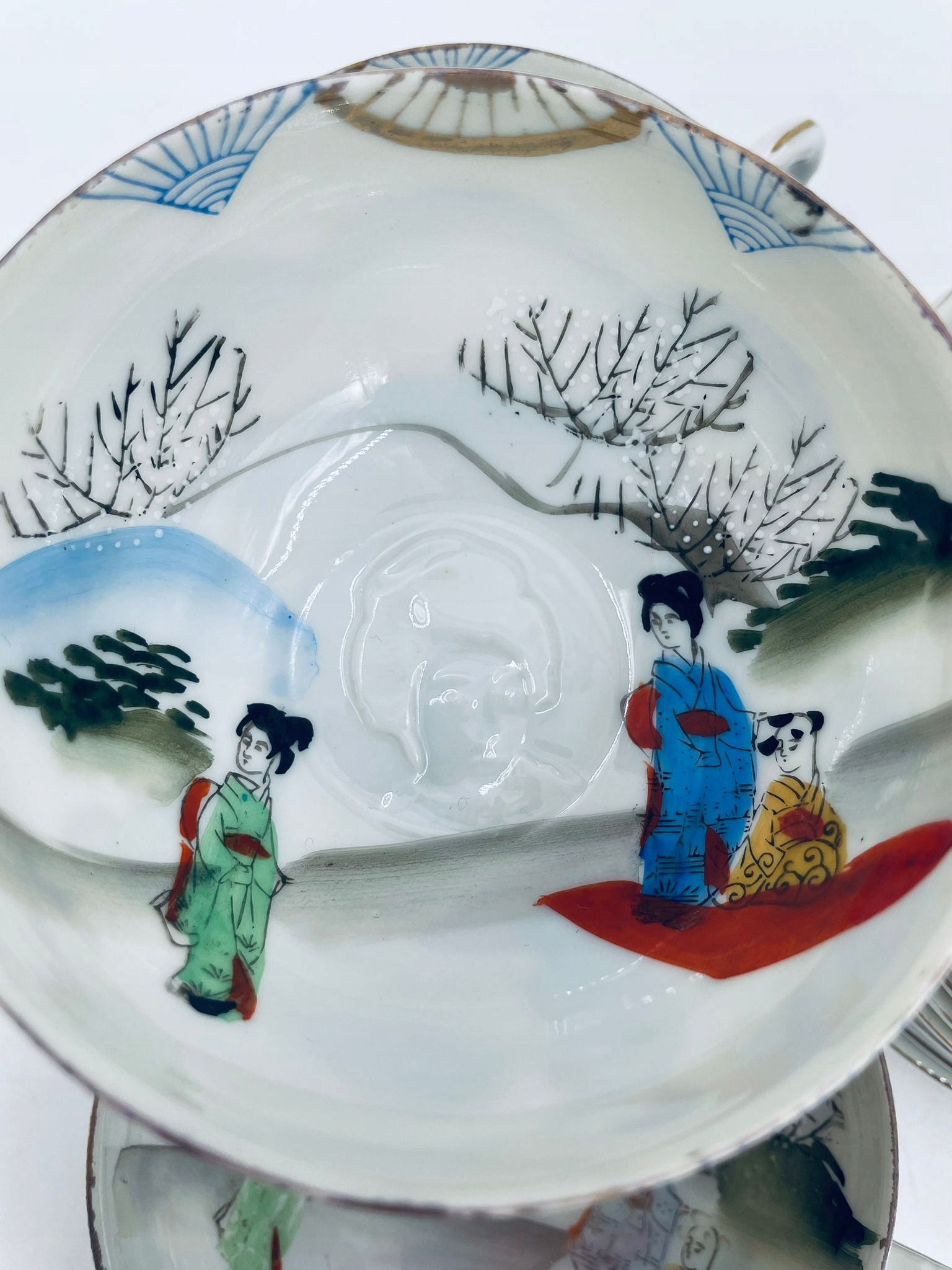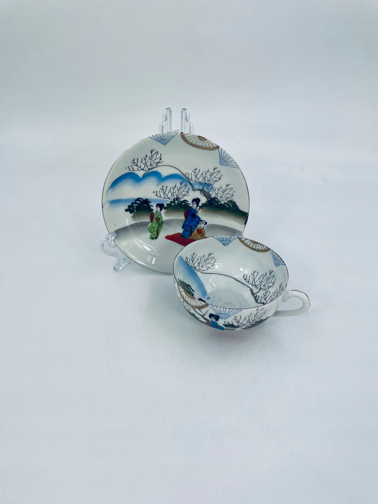 Чашка колекційна в комплекті, японська, біла, тонка порцеляна. Залиште його вручну розписаним у стилі гейші. Всередині чашки знаходиться літофановий портрет Гейші.