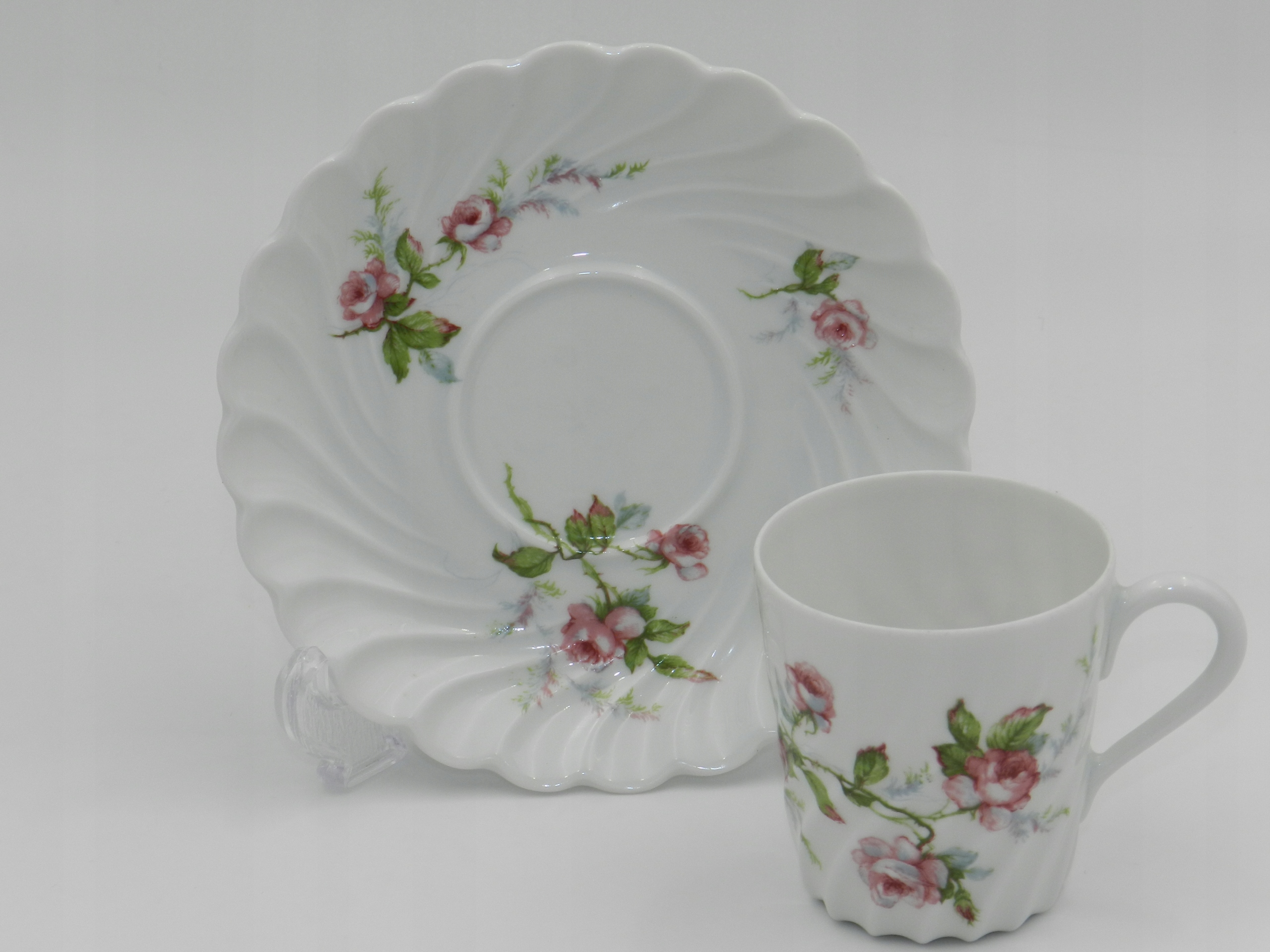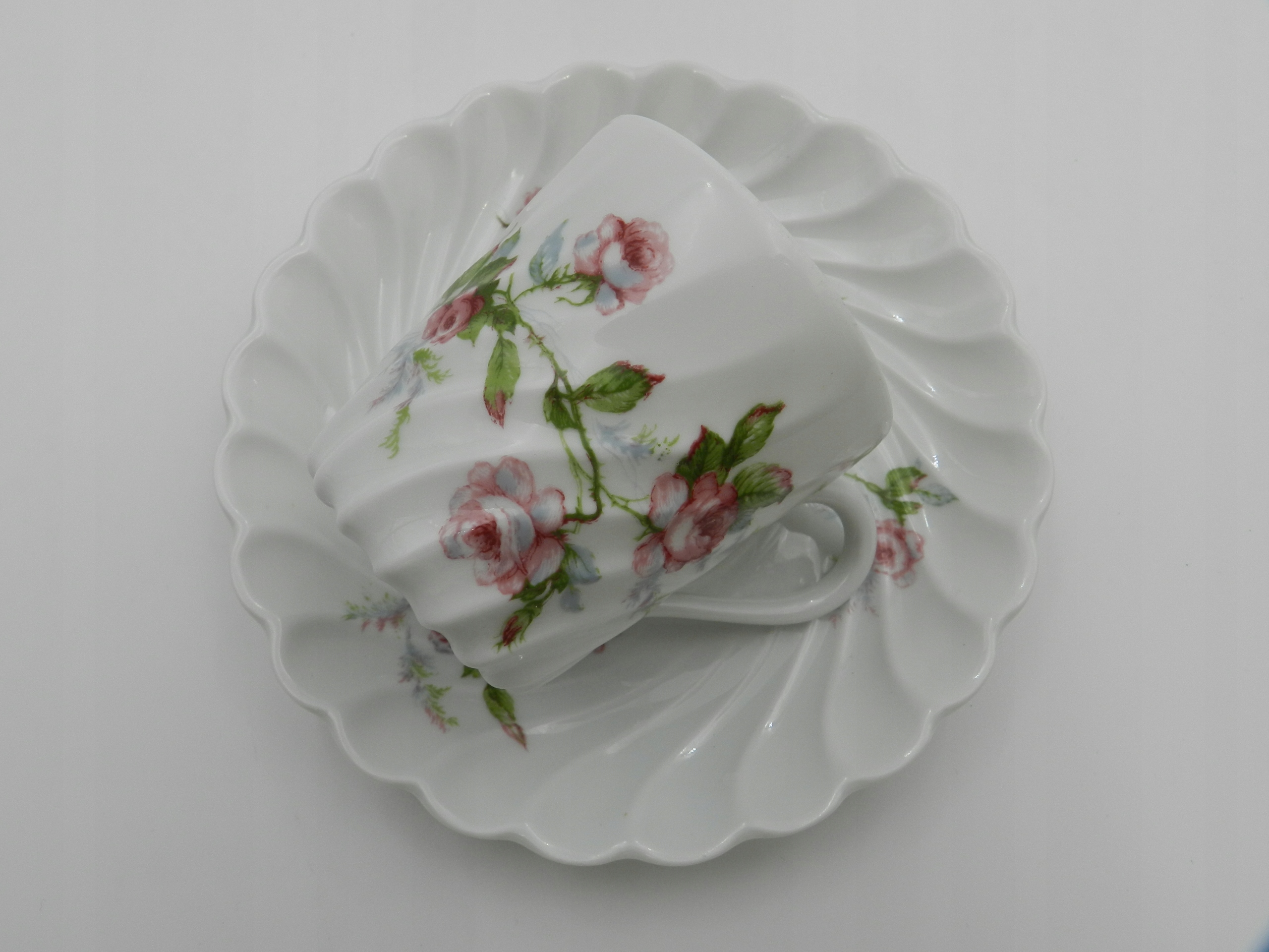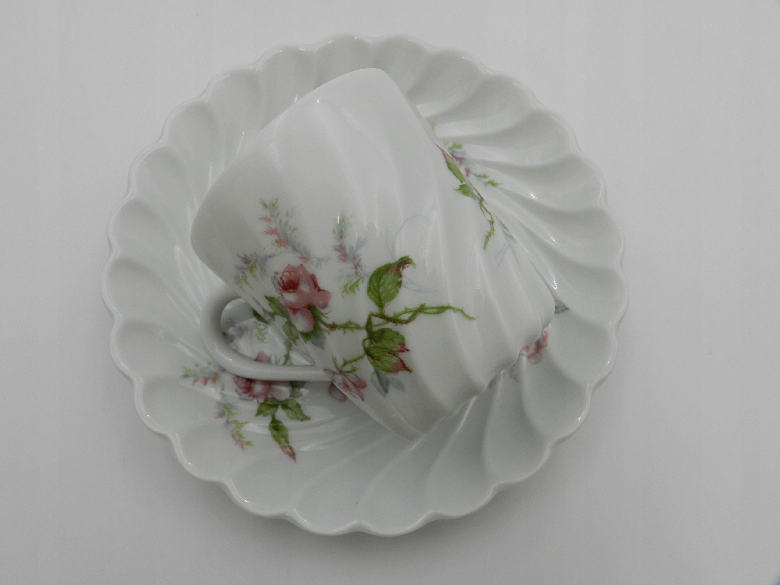 Надзвичайно ніжна, чудово пропускає світло білосніжна порцеляна. Все це прикрашено тонким квітковим декором, який чудово гармонує з використаними діагональними канавками. Маленький витвір мистецтва для вашої колекції.