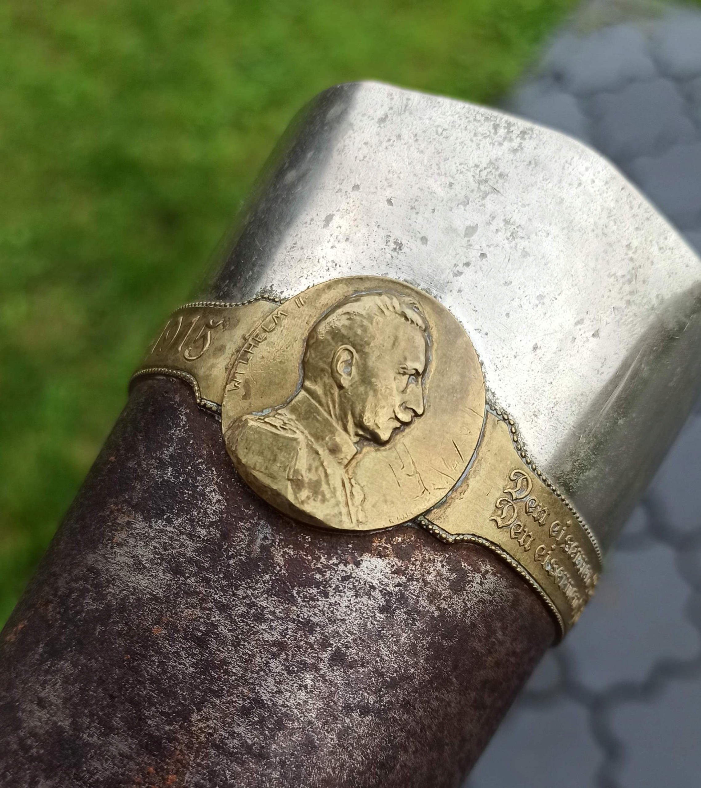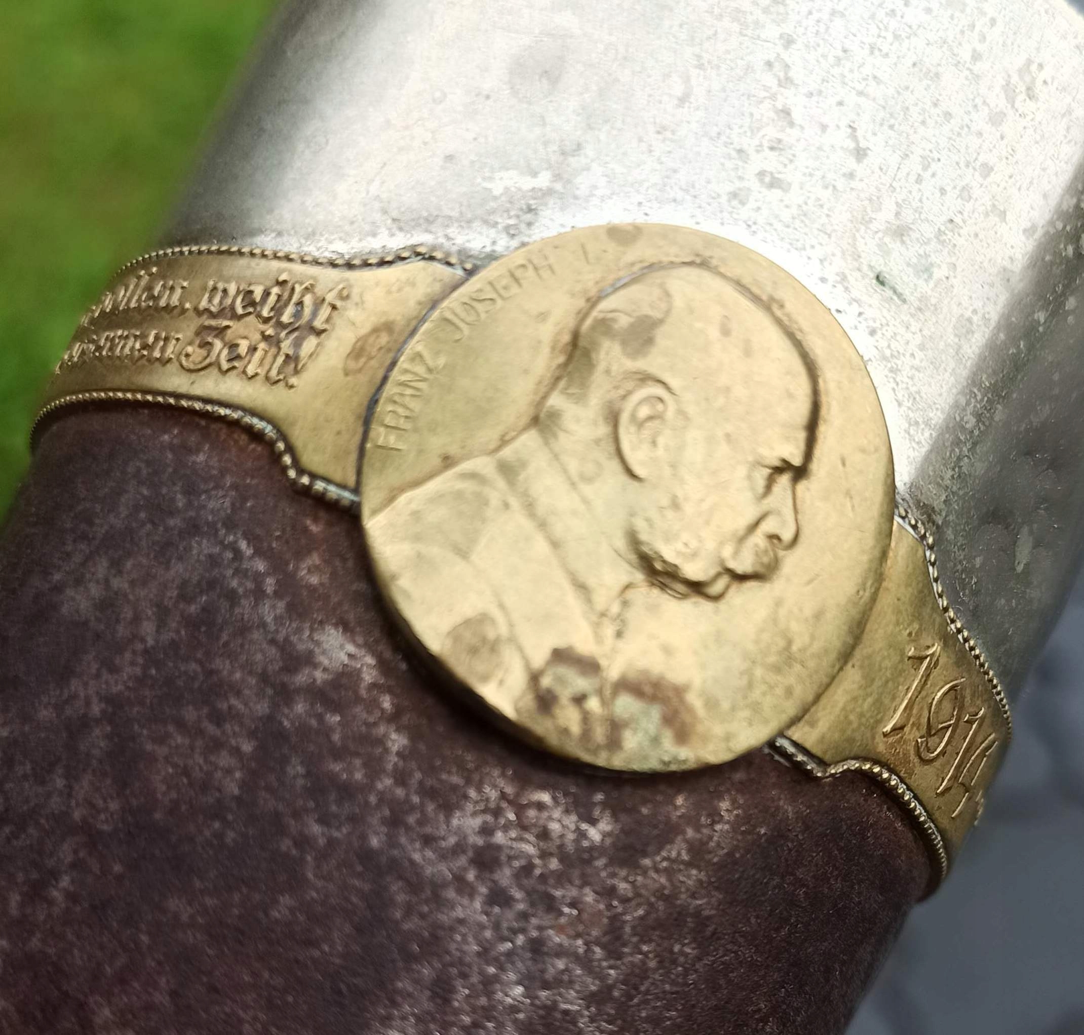 Із зображеннями імператорів Вільгельма ІІ та Франца Йосифа І. Обидва зображення з’єднані кільцем, написи готичним шрифтом німецькою мовою: