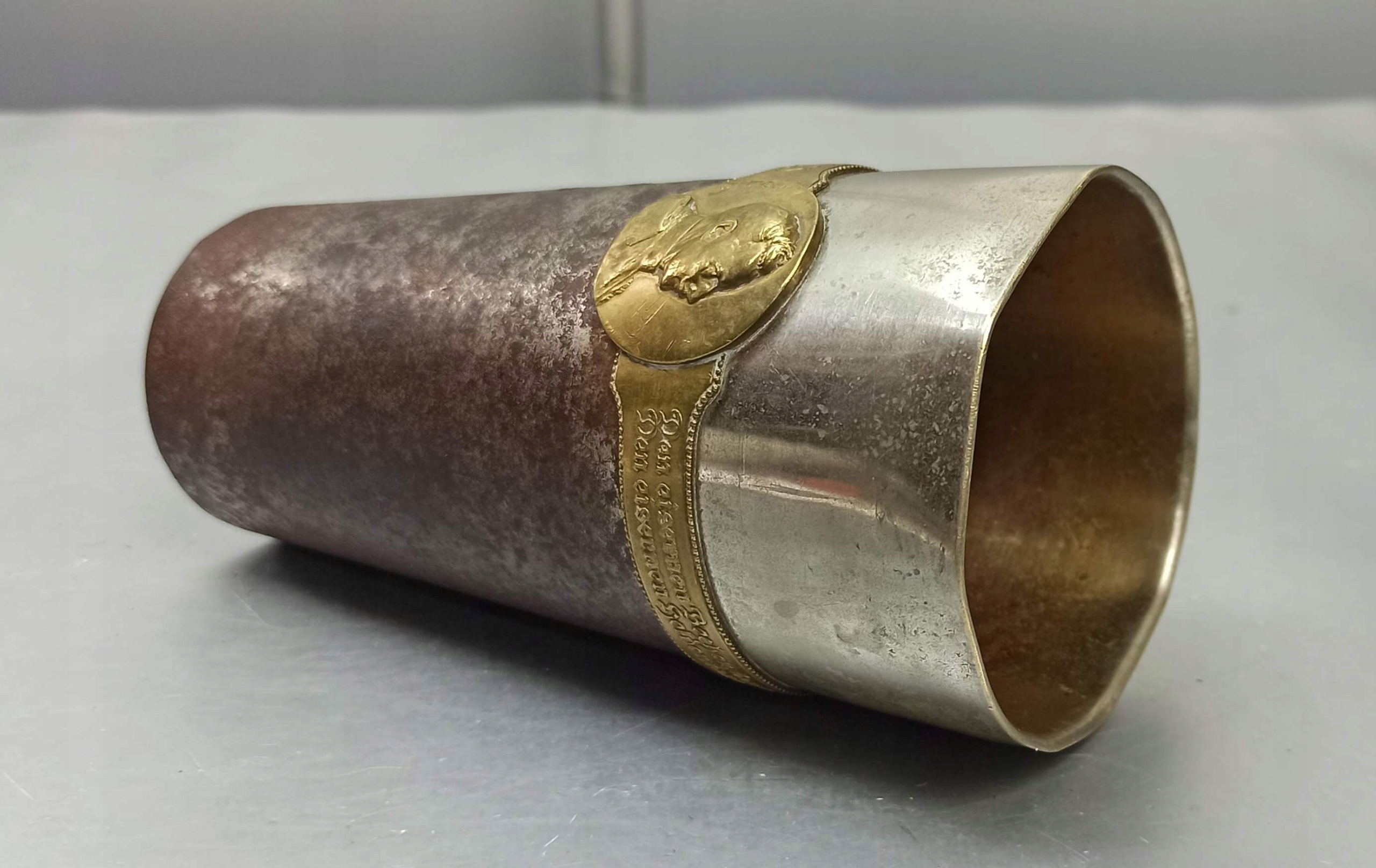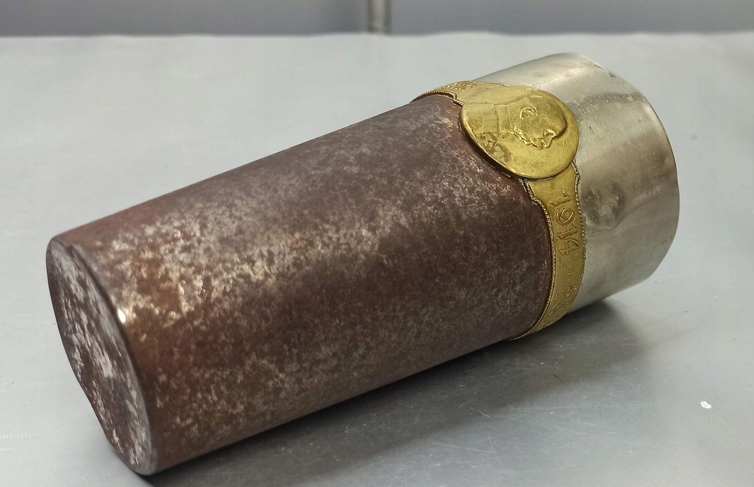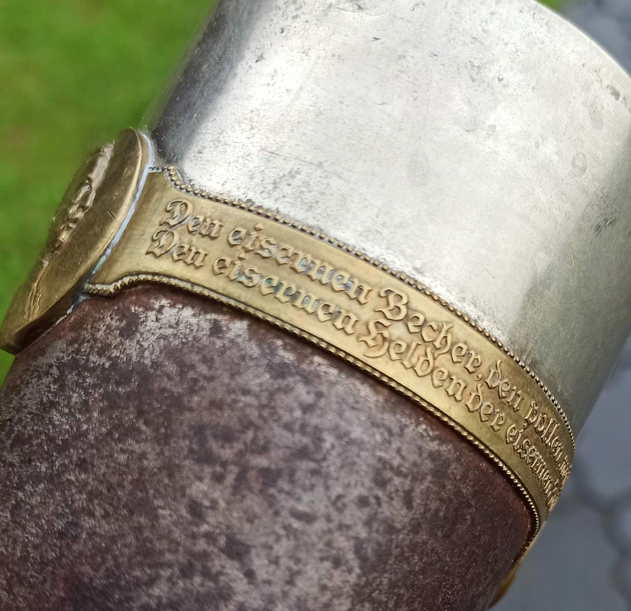 (переклад: Кубок війни 1914-1916. Ця повна залізна чаша була присвячена залізному герою - залізному часу)