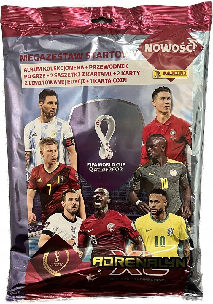 Кубок світу з футболу Qatar 2022 Adrenalen XL - Початок Megazest - картковий альбом + ігровий посібник + 2 саше з картками + 2 картки з обмеженого видання + карта монети